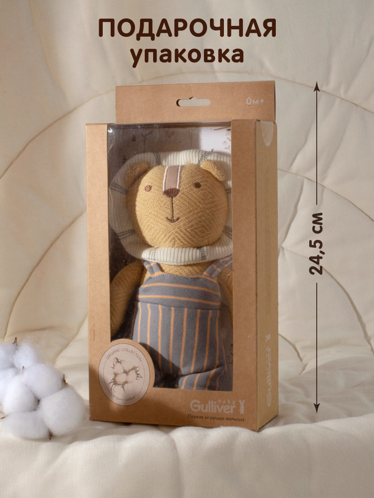 Игрушка «Львенок» от бренда Gulliver Baby, изготовленная из органического хлопка, обязательно понравится вашему малышу и станет его лучшим другом с первых дней жизни. Эта игрушка для новорожденных не только радует глаз природными цветами и милым дизайном, но и имеет погремушку, пищалку, съемный комбинезон, а также бусинки-антистресс внутри тела. Богатый функционал развивающей игрушки обеспечивает формирование слуха, зрения, моторики, восприятия различных текстур и цветов. Благодаря экоматериалу вы можете быть уверены в том, что игрушка подойдет даже для детей с чувствительной кожей. |