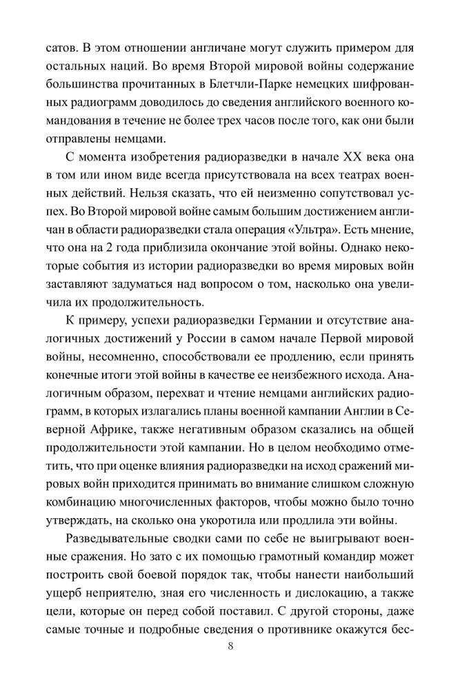 💳 Оплатить за товар можно при получении 🇰🇿 Есть бесплатная доставка по Казахстану от 1 дня 🎁 Копите бонусы с каждой покупки В начале XX века радиосвязь превратилась в основное средство оперативного управления вооруженными силами на поле боя. Радиограмму с приказом можно было почти мгновенно довести до сведения тех, кто должен был его исполнять. А радиограмма с донесением своевременно информировала об обстановке на фронте военное командование, находившееся на значительном удалении. Одновременно были разработаны эффективные методы перехвата радиограмм и взлома шифров, использованных для их засекречивания. В результате возникла радиоразведка, представляющая собой разновидность разведывательной деятельности, в ходе которой осуществляется сбор секретной информации из перехваченных радиограмм противника. Во время двух самых кровавых и разрушительных мировых войн в истории человечества, а также в холодной войне радиоразведка сыграла важную роль не только на полях сражений, но и в кабинетах государственных деятелей и дипломатов. Об этом рассказывает очередная книга серии. |