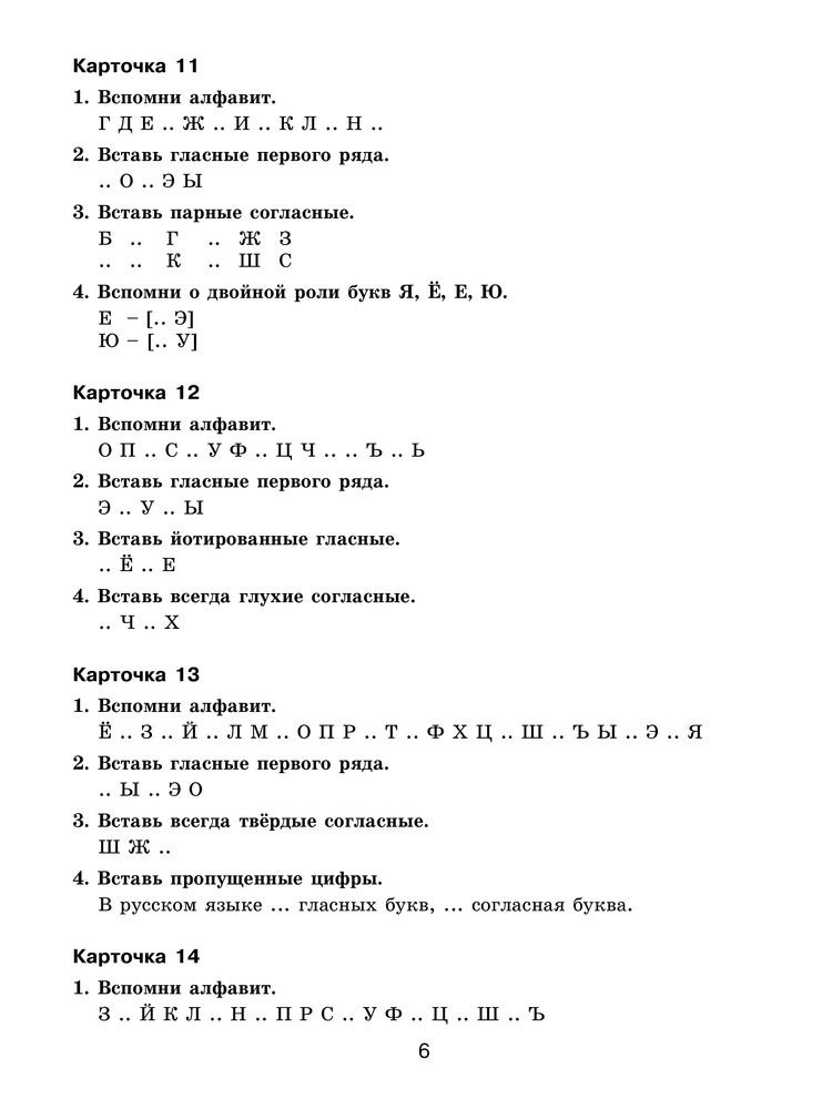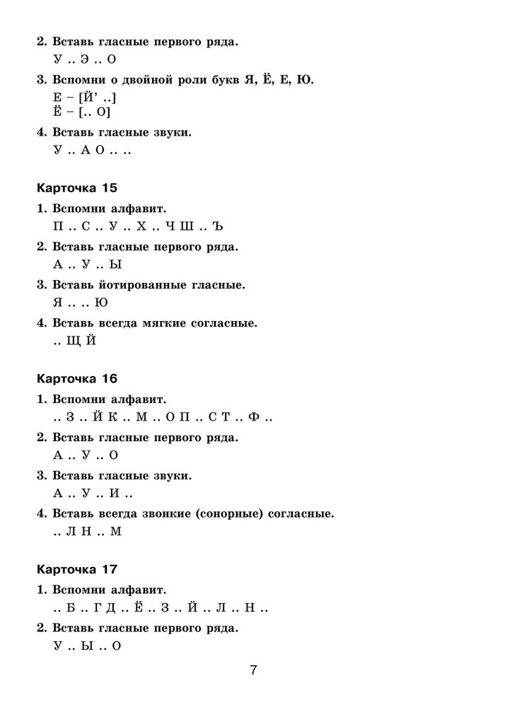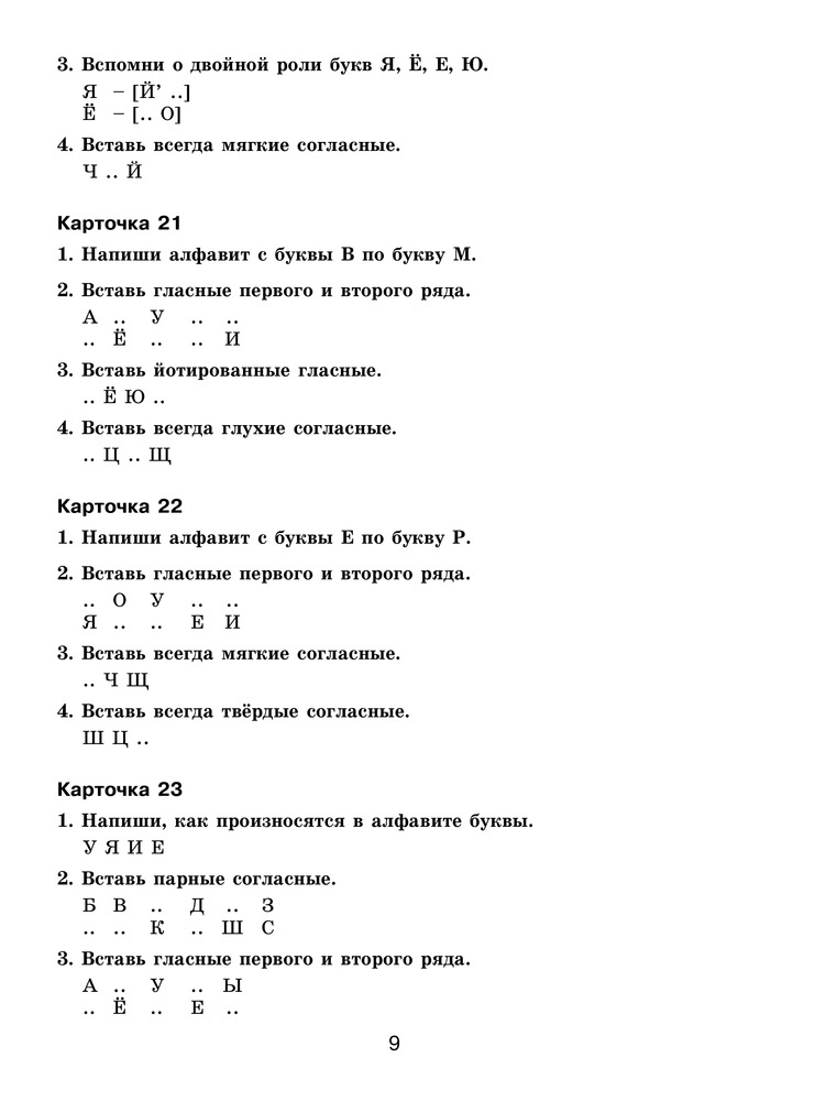 Эта книга (большая тетрадь) рассчитан на весь курс с 1 по 3 класс. Начинается с количества букв (гласных, согласных). Весь учебник (рабочая тетрадь) состоит из карточек с заданиями для того, чтобы отработать навык и довести его до автоматизма. Я считаю, что это очень полезная книга. Мой сын в 3 классе уже многое забыл, хотя в 1 классе знал все на отлично. Было бы здорово, если бы учителя в начале урока включали эти задания для разогрева, тем самым закрепляя пройденный материал.