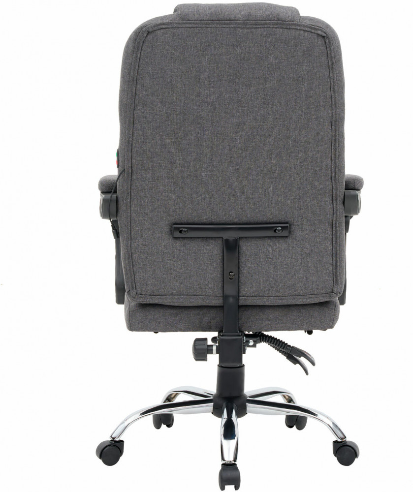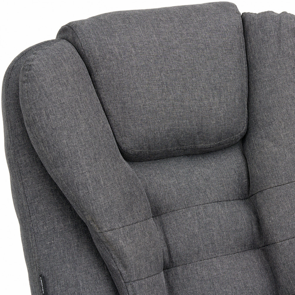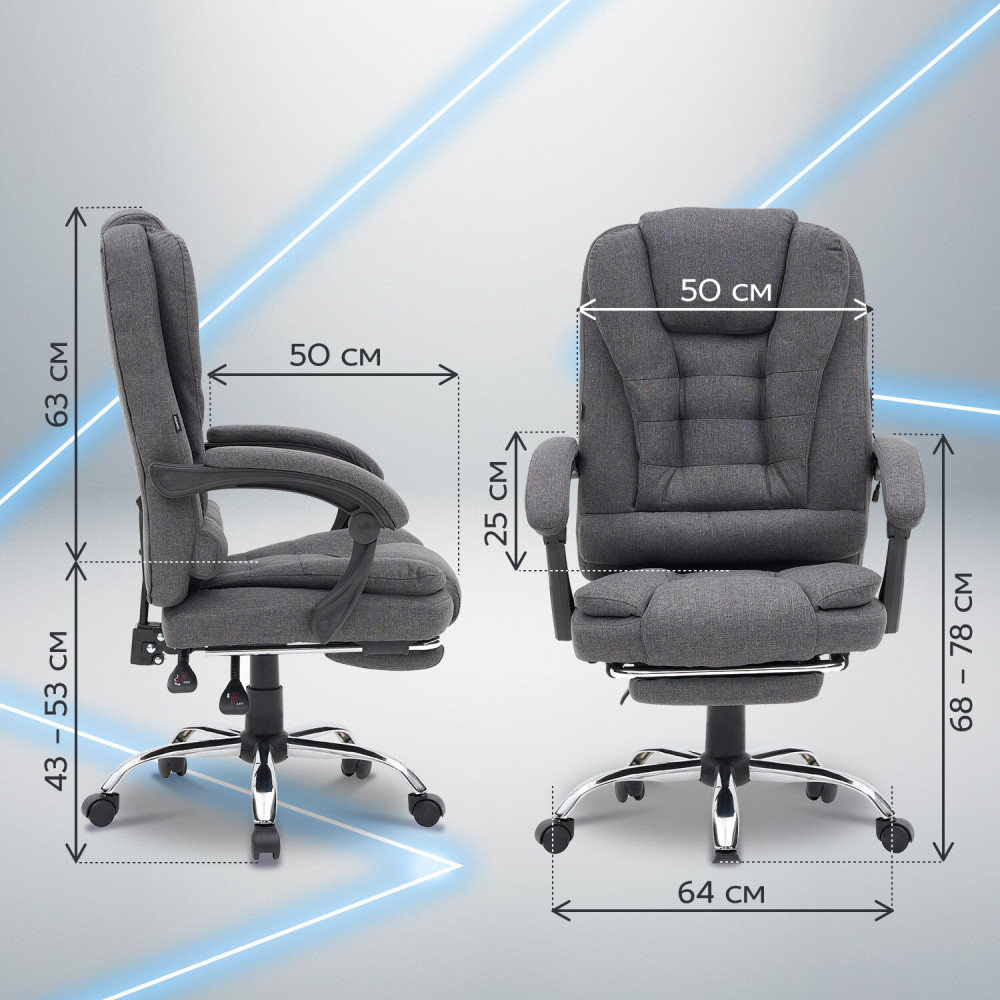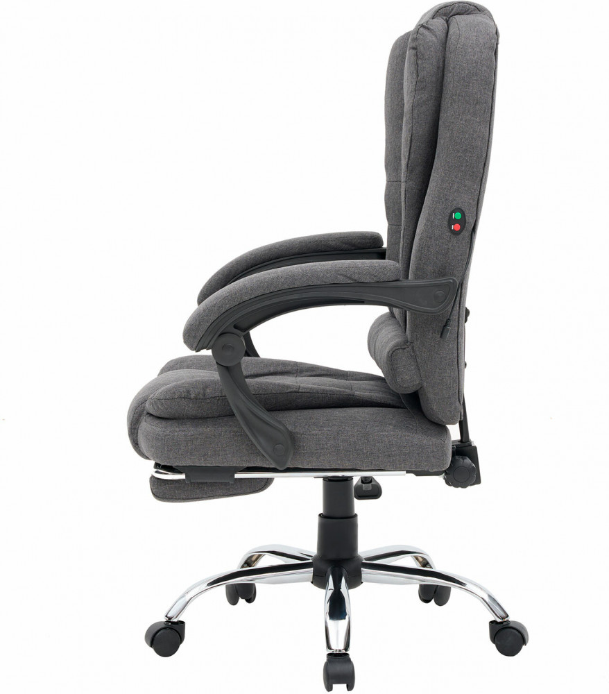 Механизм отклонения спинки позволяет настроить ее угол под индивидуальные предпочтения, а подвижные подлокотники с мягкими накладками обеспечивают комфорт в течение всего рабочего дня. Два массажных модуля в области поясницы и подставка для ног добавляет удобства и позволяет расслабиться после долгой работы. Ткань приятна на ощупь и проста в уходе, а стильный дизайн впишется в любой интерьер.