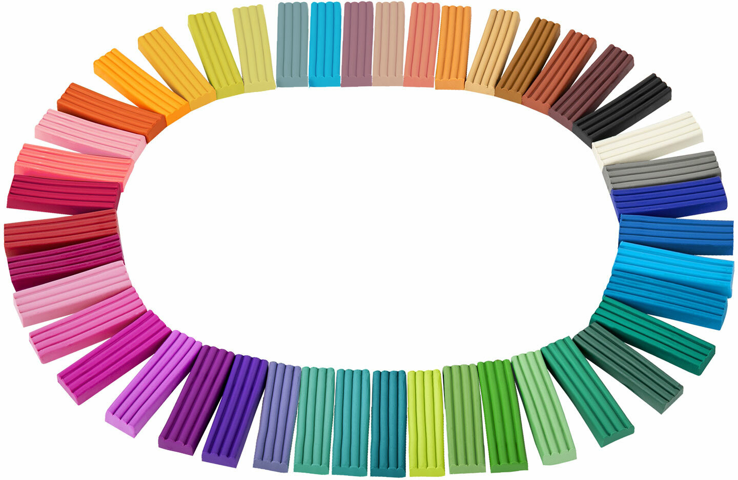 В составе набора 44 бруска по 15 г разных цветов: белый, телесный, банан, охра, ярко-оранжевый, манго, оранжевый, коралловый, красный, вишневый, малиновый, светло-розовый, розовый, лиловый, светло-сиреневый, темно-лиловый, сиреневый, слива, фиолетовый, ультрамарин, светло-синий, синий, тёмный желтый, желтый, зеленый арбуз, лимон, оливковый, салатовый, мятная жвачка, светло-зеленый, зеленый, изумрудный, темно-зеленый, бирюзовый, голубой, ежевика, светло-серый, серый, терракотовый, красно-коричневый, светло-коричневый, капучино, темно-коричневый, черный. |