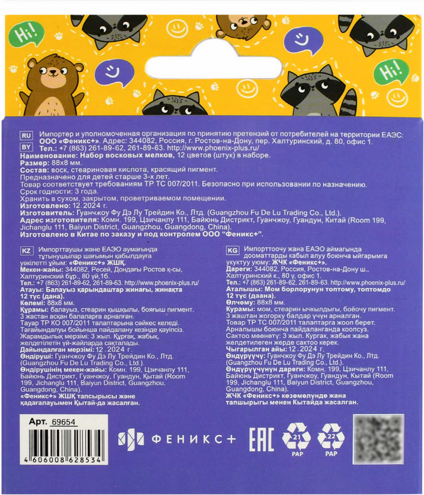 Феникс + Набор мелков восковых «Мишка и енот»-40% +16
