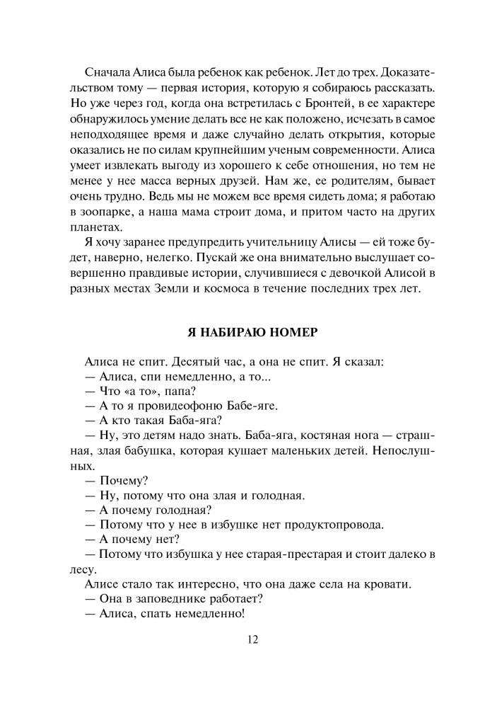 Спасибо! Рассказы интересные, даже читаю сама )) Купила, потому что смотрели современный мультфильм про Алису и ее путешествия. Рисунки немного не в моем вкусе, но об этом не спорят. Дочке нравится книга, но для 7 лет немного тяжеловато, хоть она и читает очень хорошо. Советую для детей постарше, т.к. некоторые слова трудноваты. В целом я довольна покупкой!