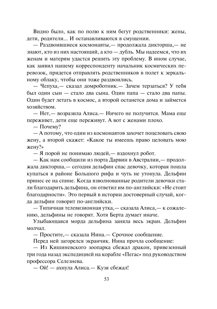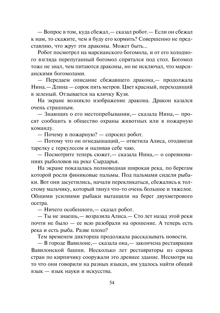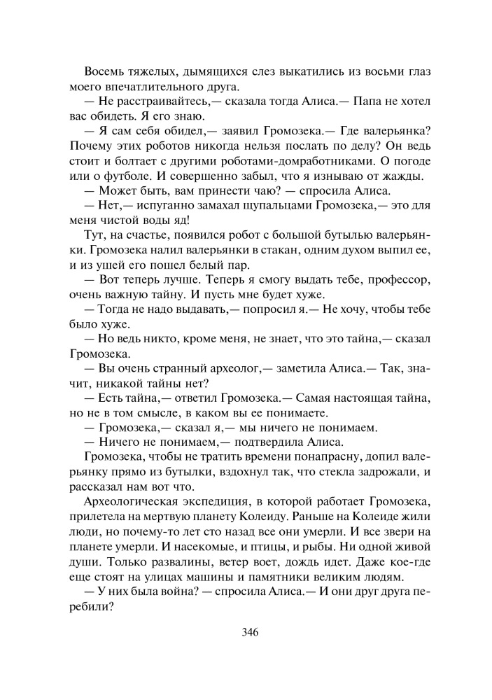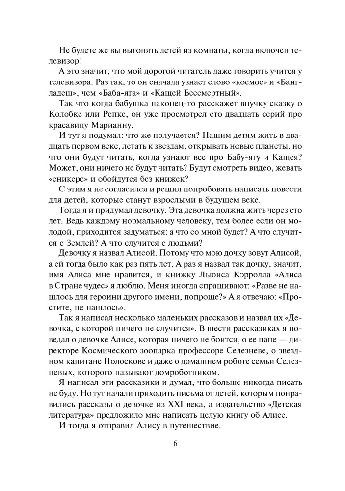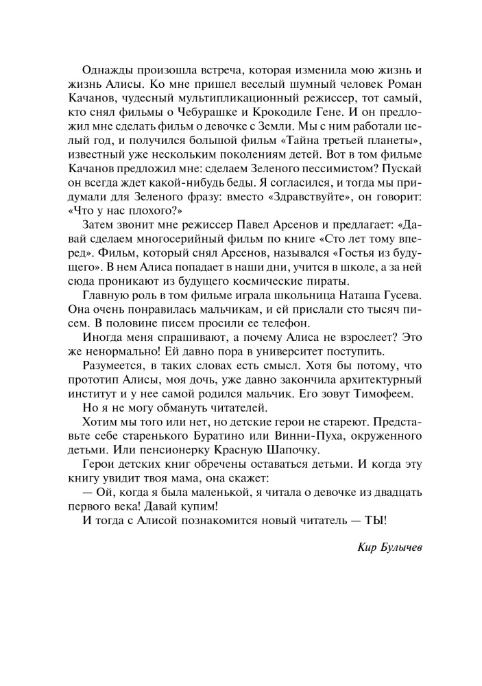 Девочка с Земли. Сборник фантастических повестей о приключениях Алисы СелезневойВ данный момент этот товар отсутствует в продаже. Возможно, у нас найдется аналогичный или похожий товар здесь. Серия: Большая иллюстрированная серия В книгу вошли четыре повести Кира Булычева — «Девочка, с которой ничего не случится», «Ржавый фельдмаршал», «Путешествие Алисы» и «День рождения Алисы», рассказывающие о приключениях Алисы Селезневой. Вместе с ней и ее друзьями вы вступите в противоборство с сумасшедшими роботами и космическими пиратами, совершите путешествие на машине времени, побываете на других планетах, где живут удивительные существа, отпразднуете вместе с Алисой самый фантастический день ее рождения. |