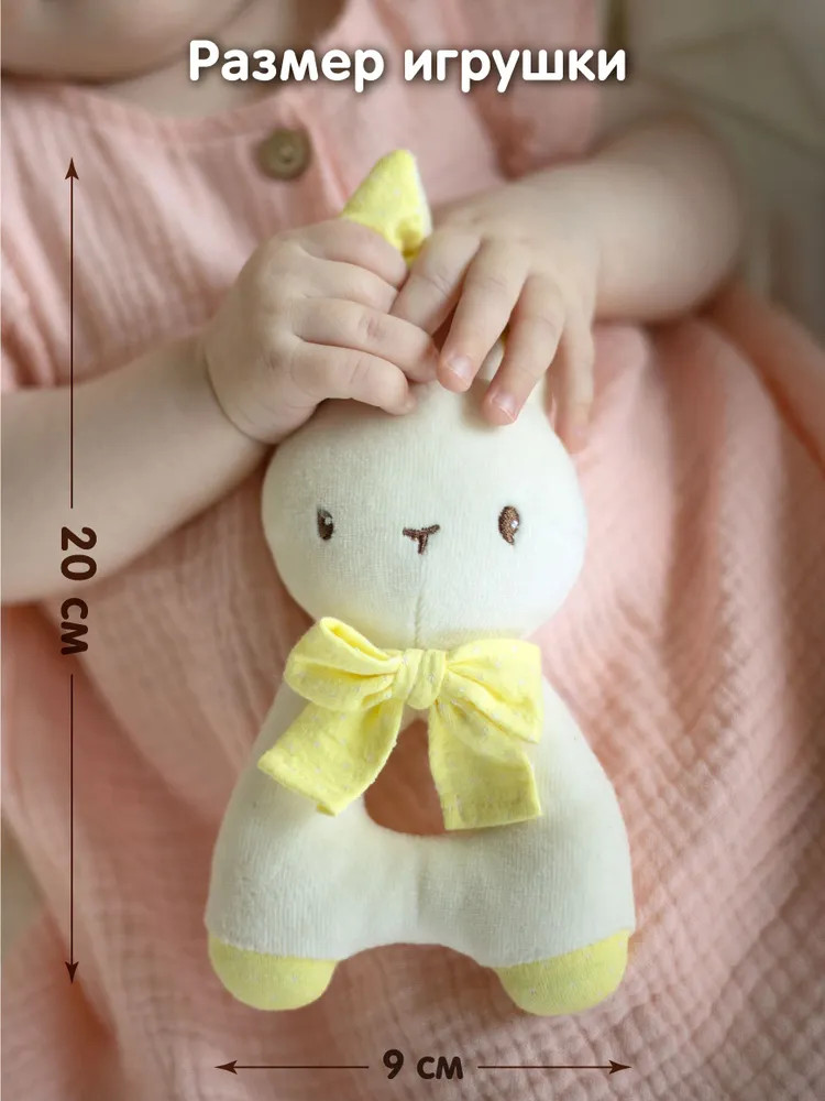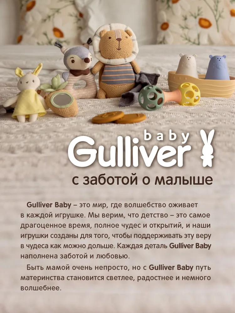 💳 Оплатить за товар можно при получении 🇰🇿 Есть бесплатная доставка по Казахстану от 1 дня 🎁 Копите бонусы с каждой покупки Игрушка-погремушка для новорожденных «Зайка» от бренда Gulliver Baby сочетает в себе безопасность, комфорт и развивающий потенциал. Изготовленная из органического хлопка и нежного велюра, она безопасна для нежной кожи малыша. Милый дизайн в виде забавного зайчика непременно вызовет улыбку у крохи и привлечет его внимание. Бантик на шее зайчика добавляет очарования этой замечательной игрушке. Нежный, приятный звук погремушки стимулирует слух малыша, а контрастные желтые вставки способствуют развитию зрительных навыков и концентрации внимания. Удобная форма погремушки позволит ребенку легко держать ее в своих маленьких ручках, развивая зрительно-двигательную координацию и мелкую моторику. Идеально подойдет в качестве первого подарка новорожденному. Рекомендуется для детей с рождения. Допустима деликатная ручная стирка при температуре 30°С, использовать моющие средства, предназначенные для детей до 3 лет. |