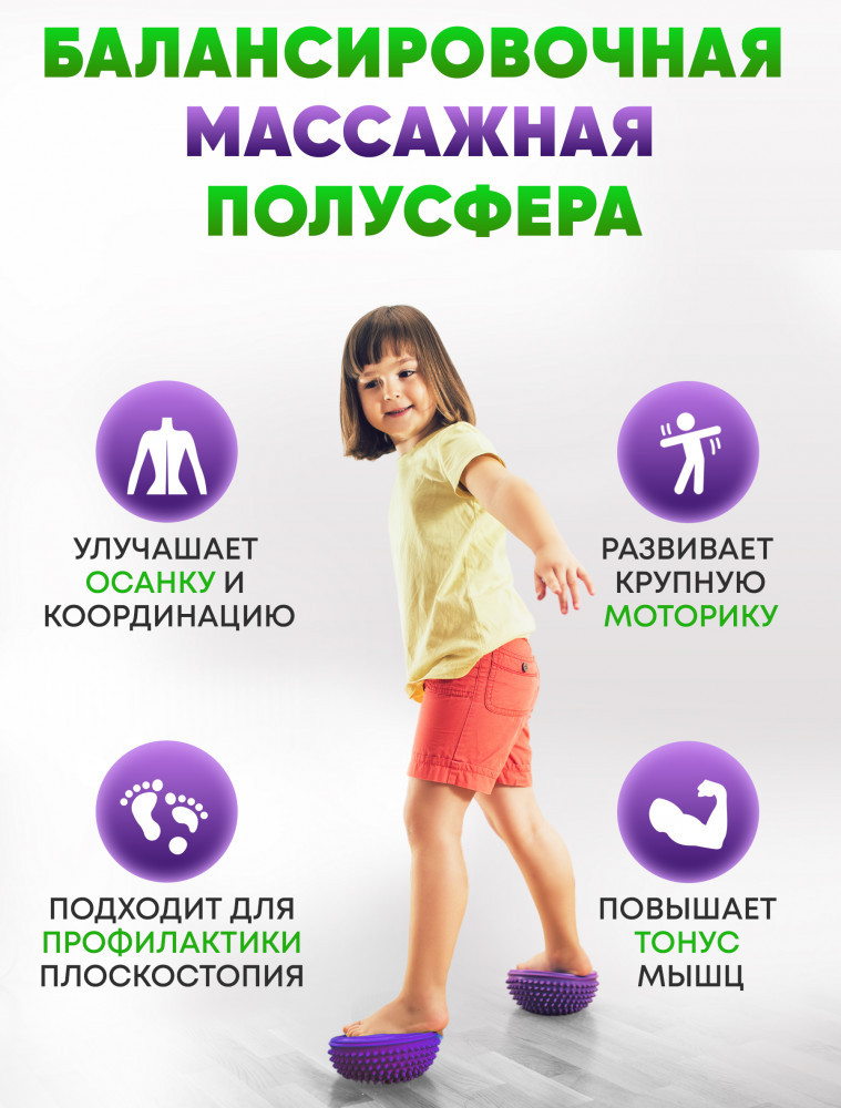 Альпина Пласт Набор полусфер массажных балансировочныхВ данный момент этот товар отсутствует в продаже. Возможно, у нас найдется аналогичный или похожий товар здесь. Полусфера балансировочная массажная с шипами 2 шт. — это идеальный массажер для всей семьи с большим набором функций: ·подходит в качестве профилактики плоскостопия и других заболеваний стоп; • тренирует вестибулярный аппарат; повышает тонус мышц; развивает координацию движений, гибкость и баланс. |