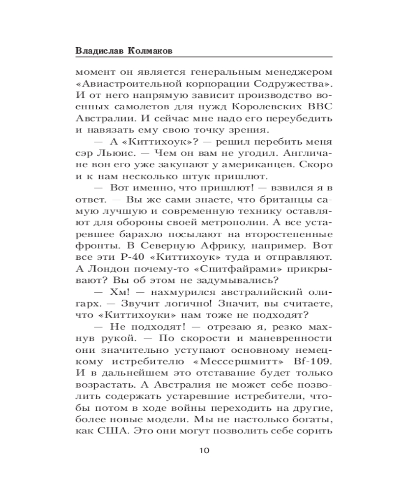 💳 Оплатить за товар можно при получении 🇰🇿 Есть бесплатная доставка по Казахстану от 1 дня 🎁 Копите бонусы с каждой покупки Серия: Военная фантастика Александр Матросов снова в строю. Даже тяжелое ранение не смогло помешать ему опять подняться в небо. В этот раз ему придется вживаться в общество Австралии. А потом и воевать за эту страну. Такой профессионал, как он, просто не сможет остаться в стороне. Драться насмерть в небе с жестокими противниками. Вот всё, что он умеет в жизни. Мирное прозябание на земле не для него. Хотя для этого у нашего героя всё есть. Любимая жена, известность и обеспеченная жизнь. Казалось бы, живи и радуйся. Но он летчик-истребитель. И этим всё сказано. Не для него мирная жизнь, когда рядом бушует Вторая мировая война. |