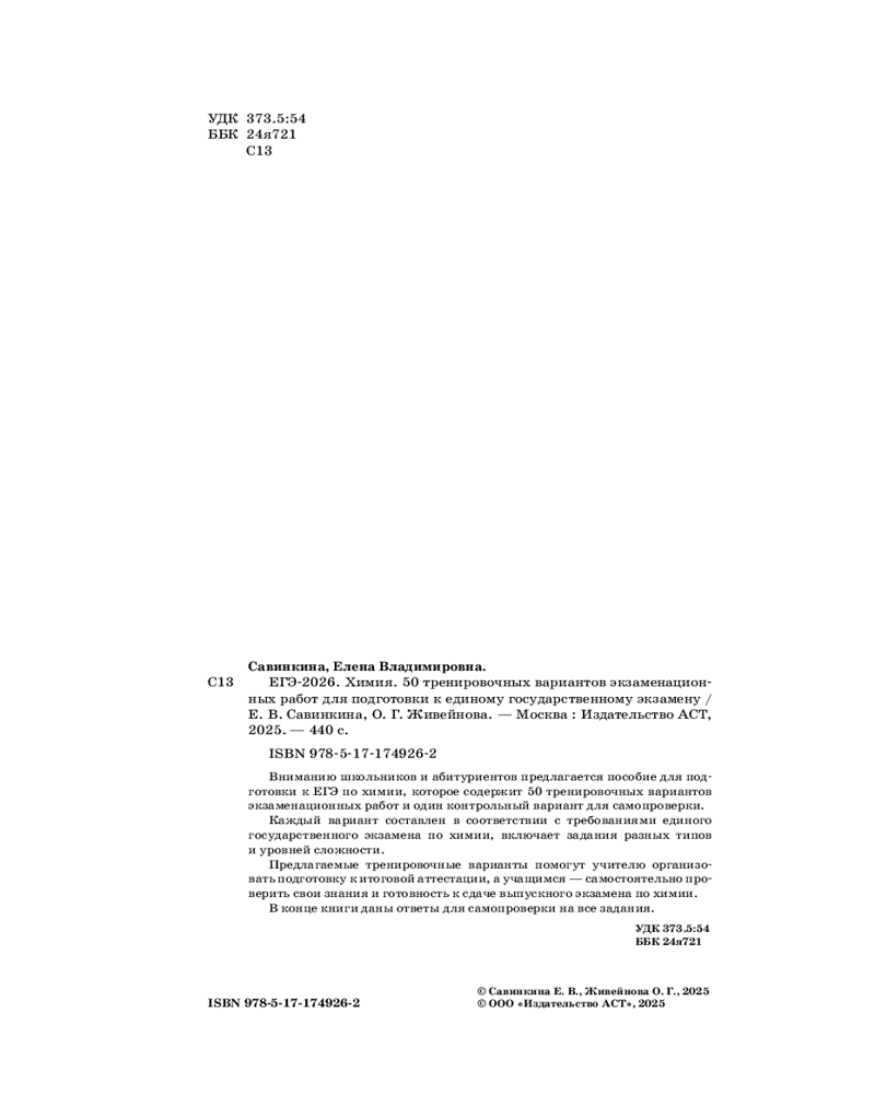 ЕГЭ-2026. Химия. 50 тренировочных вариантов экзаменационных работ для подготовки к единому государственному экзаменуЕлена Владимировна Савинкина, Ольга Геннадьевна Живейнова +147