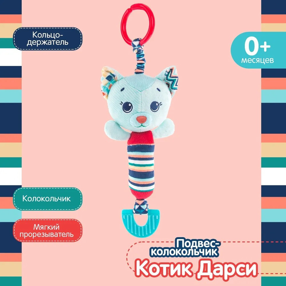 Happy Snail Подвес-колокольчик «Котик Дарси»В данный момент этот товар отсутствует в продаже. Возможно, у нас найдется аналогичный или похожий товар здесь. Подвес-колокольчик «Котик Дарси» от Happy Snail, выполненный в оригинальном стиле, удобно закрепить на коляску или кроватку малыша. Игрушка забавно звенит при движении благодаря колокольчику. Подвес имеет прорезыватель с рифленой поверхностью, который поможет при прорезывании первых зубок. Кольцо-крепление соединено с игрушкой эластичной веревкой, растягивающейся и сжимающейся в процессе игры, что развивает хватательный навык. Вытянутое тело котенка удобно помещается в детской руке. Подвес выполнен из безопасных, высококачественных материалов, различных по фактуре. Все игрушки Happy Snail проходят тщательные процедуры тестирования на протяжении всего процесса разработки, поэтому они безопасны для младенцев. |