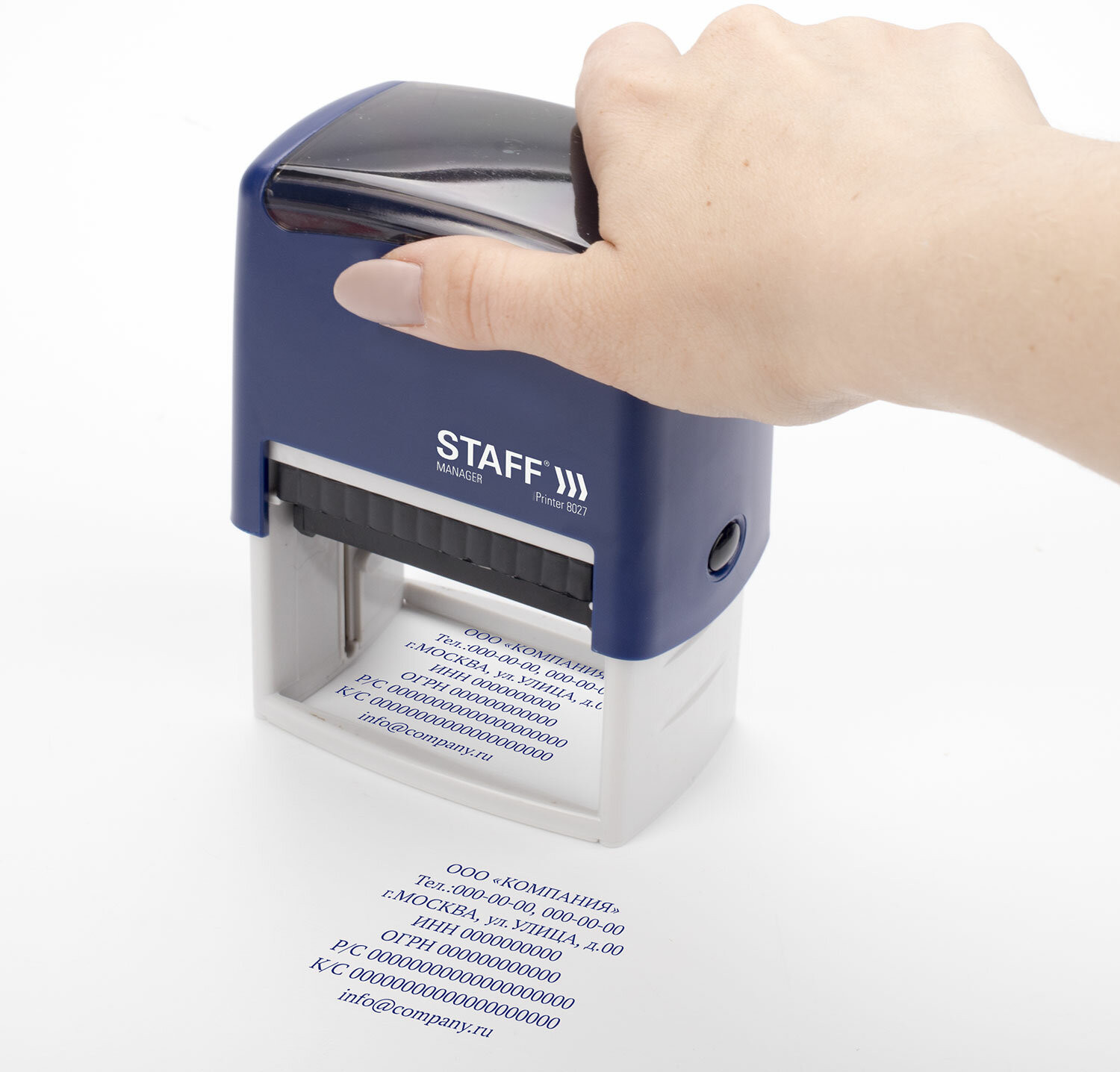 💳 Оплатить за товар можно при получении 🇰🇿 Есть бесплатная доставка по Казахстану от 1 дня 🎁 Копите бонусы с каждой покупки Серия: Stamp Самонаборный штамп Staff «Printer 8027» предназначен для создания оттиска с собственным содержанием, что позволяет существенно экономить рабочее время при нанесении необходимых отметок на документы. |