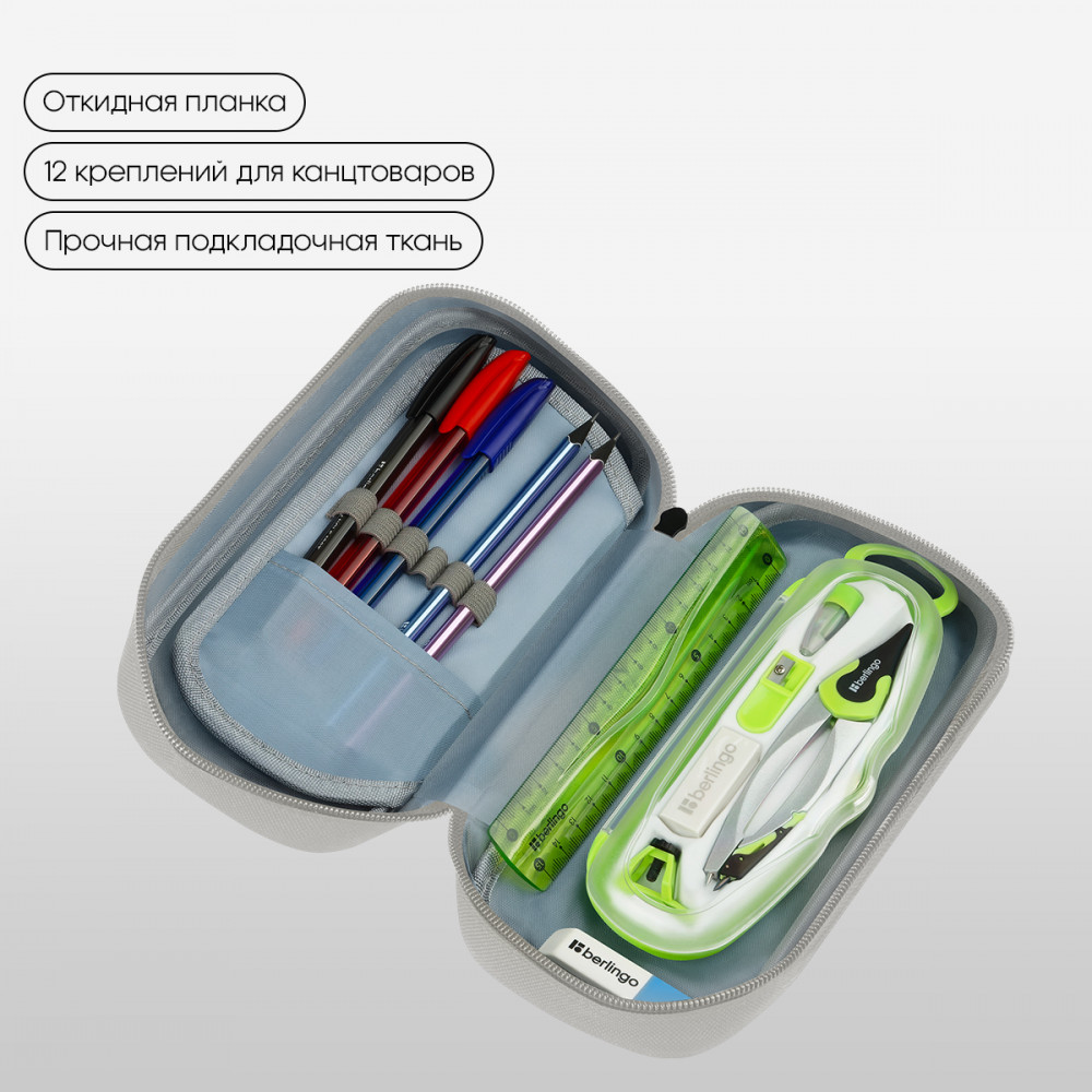 Berlingo Пенал-футляр школьный мягкийВ данный момент этот товар отсутствует в продаже. Возможно, у нас найдется аналогичный или похожий товар здесь. Серия: Trendy Beige Мягкий пенал-футляр Berlingo с одним отделением помогает хранить и переносить канцелярские принадлежности. Изделие размером 220×95×50 мм не занимает много места в рюкзаке. Один наружный карман и откидная планка увеличивают вместимость пенала. Материал лицевой поверхности и подкладки − полиэстер. С двух сторон откидной планки расположено 12 креплений-резиночек для канцтоваров, благодаря которым внутри пенала легко поддерживать порядок. Изделие упаковано в индивидуальный пакет. |
