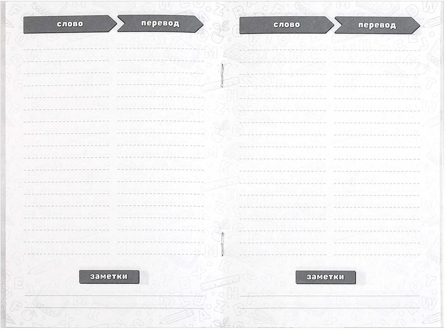 Тетрадь для записи иностранных слов с закладкой послужит школьнику хорошим подспорьем для запоминания новых слов и выражений, которые были выучены на уроке. Школьник самостоятельно составляет мини-словарик, в котором всегда может быстро найти нужное ему слово, его перевод, написание и произношение. |