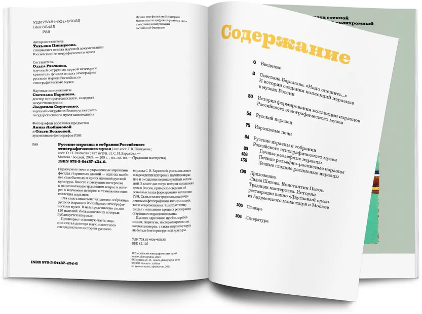 Предваряет основную часть издания статья доктора наук, известного специалиста по истории русского изразца С. И. Барановой, рассказывающая о зарождении интереса к изучению изразцов и о создании первых музейных коллекций. В книге дан очерк истории изразцового дела в России, приведены сведения об основных вехах формирования коллекции РЭМ. Статьи иллюстрированы многочисленными фотографиями, как архивными, так и современными. Завершает книгу раздел с описанием процесса реставрации старинного изразцового панно. Издание адресовано музейным работникам, педагогам, мастерам-керамистам, коллекционерам, а также широкому кругу любителей истории русской культуры. |