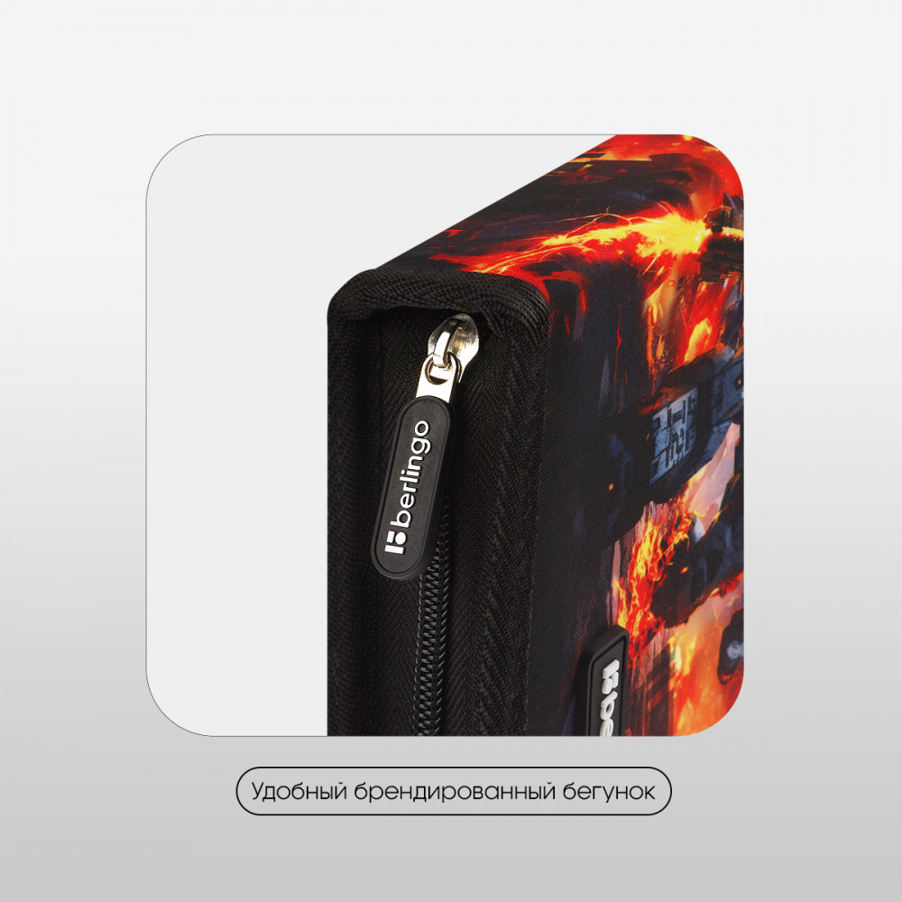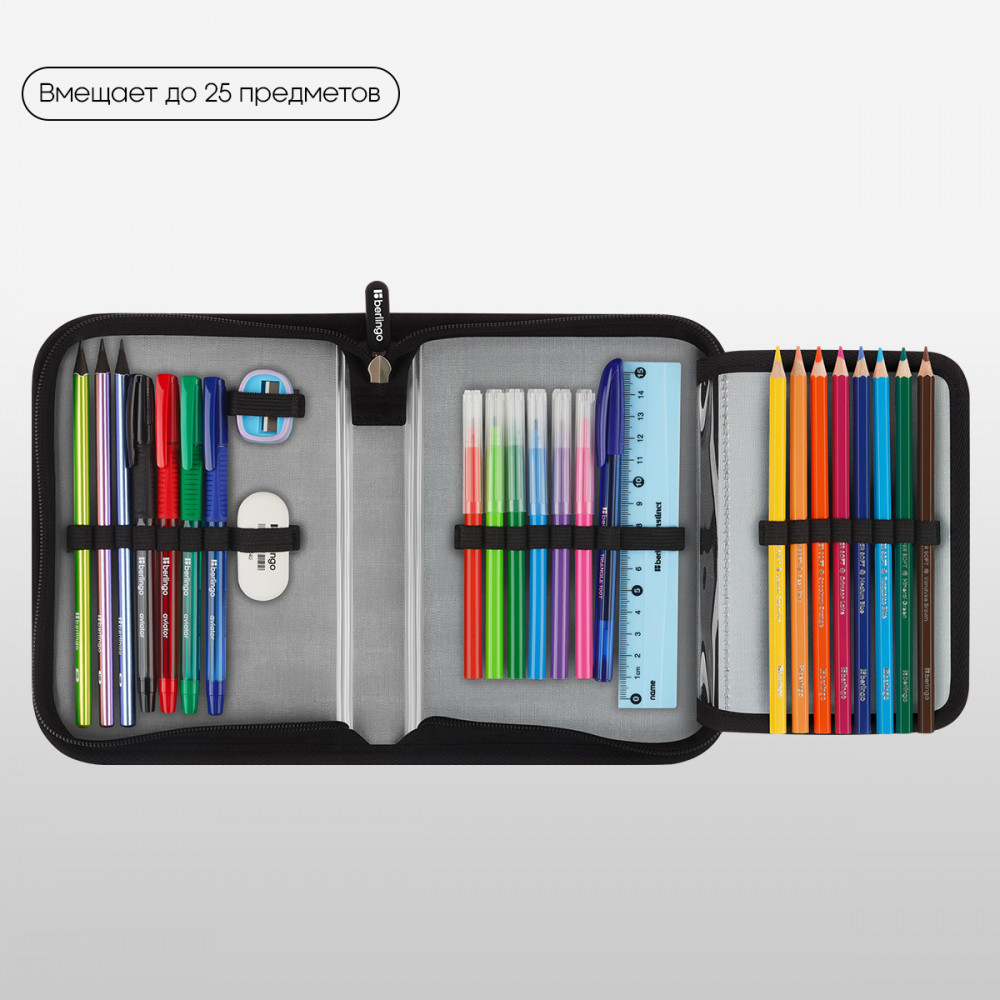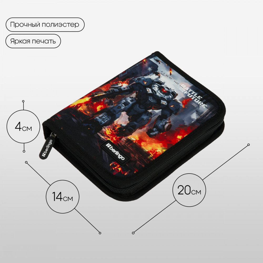 💳 Оплатить за товар можно при получении 🇰🇿 Есть бесплатная доставка по Казахстану от 1 дня 🎁 Копите бонусы с каждой покупки Серия: Battle For The Future Каркасный пенал Berlingo помогает школьнику хранить канцелярские принадлежности в одном месте. Изделие размером 200×140×40 мм не занимает много места в рюкзаке. В одно отделение помещается 25 предметов. За счёт креплений-резиночек для канцтоваров внутри пенала легко поддерживать порядок. Одна откидная планка увеличивает вместимость изделия и позволяет всегда держать расписание уроков перед глазами. Благодаря крупному бегунку ребёнку удобно открывать пенал на молнии. Лицевая поверхность сделана из износостойкого полиэстера, а внутренняя — из текстурного ПВХ. |