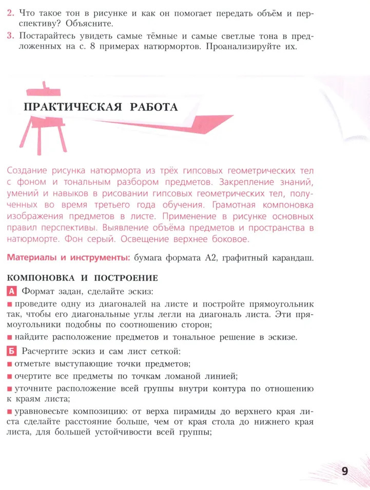 Учащиеся смогут углубить свои знания о законах перспективы и светотени в рисунке, особенностях передачи объёма, фактуры и материальности; узнают некоторые секреты работы художников-графиков. По каждой теме даны обобщающие вопросы, практические творческие задания с описанием и показом всех этапов работы. Книга включает репродукции произведений графики разных эпох и направлений, методические рисунки и схемы, а также варианты учебных работ. По курсу «Живопись» в свет вышли учебные пособия "Живопись.