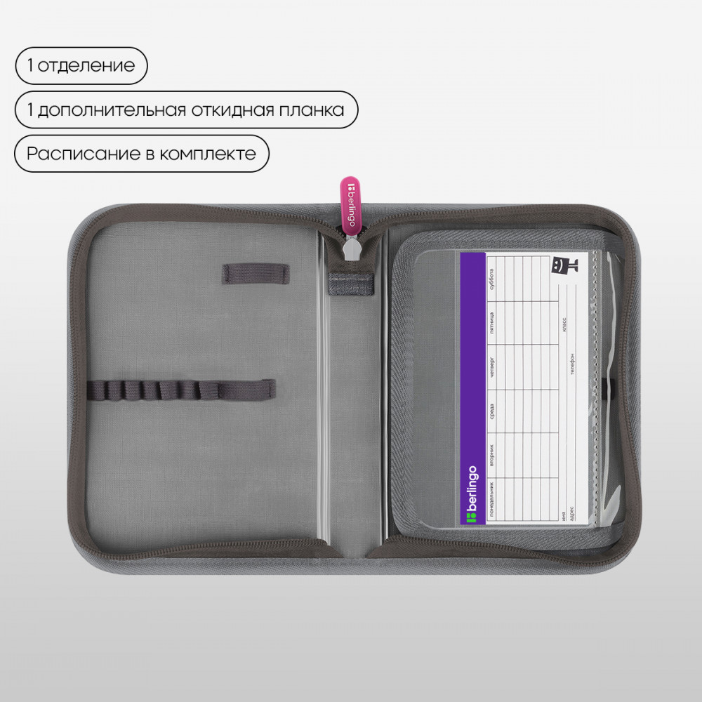 💳 Оплатить за товар можно при получении 🇰🇿 Есть бесплатная доставка по Казахстану 🎁 Копите бонусы с каждой покупки Серия: Dreamy Bunny Каркасный пенал Berlingo помогает школьнику хранить канцелярские принадлежности в одном месте. Изделие размером 200×140×40 мм не занимает много места в рюкзаке. В одно отделение помещается 25 предметов. За счёт креплений-резиночек для канцтоваров внутри пенала легко поддерживать порядок. Одна откидная планка увеличивает вместимость изделия и позволяет всегда держать расписание уроков перед глазами. Благодаря крупному бегунку ребёнку удобно открывать пенал на молнии. Лицевая поверхность сделана из износостойкого полиэстера, а внутренняя — из текстурного ПВХ. |