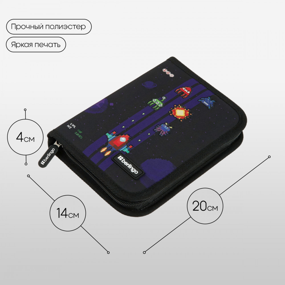 💳 Оплатить за товар можно при получении 🇰🇿 Есть бесплатная доставка по Казахстану от 1 дня 🎁 Копите бонусы с каждой покупки Серия: Space Battle Каркасный пенал Berlingo помогает школьнику хранить канцелярские принадлежности в одном месте. Изделие размером 200×140×40 мм не занимает много места в рюкзаке. В одно отделение помещается 25 предметов. За счёт креплений-резиночек для канцтоваров внутри пенала легко поддерживать порядок. Одна откидная планка увеличивает вместимость изделия и позволяет всегда держать расписание уроков перед глазами. Благодаря крупному бегунку ребёнку удобно открывать пенал на молнии. Лицевая поверхность сделана из износостойкого полиэстера, а внутренняя — из текстурного ПВХ. |