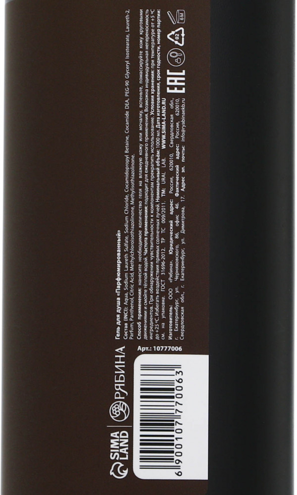 Ural lab Гель для душа парфюмированный «Black pepper»