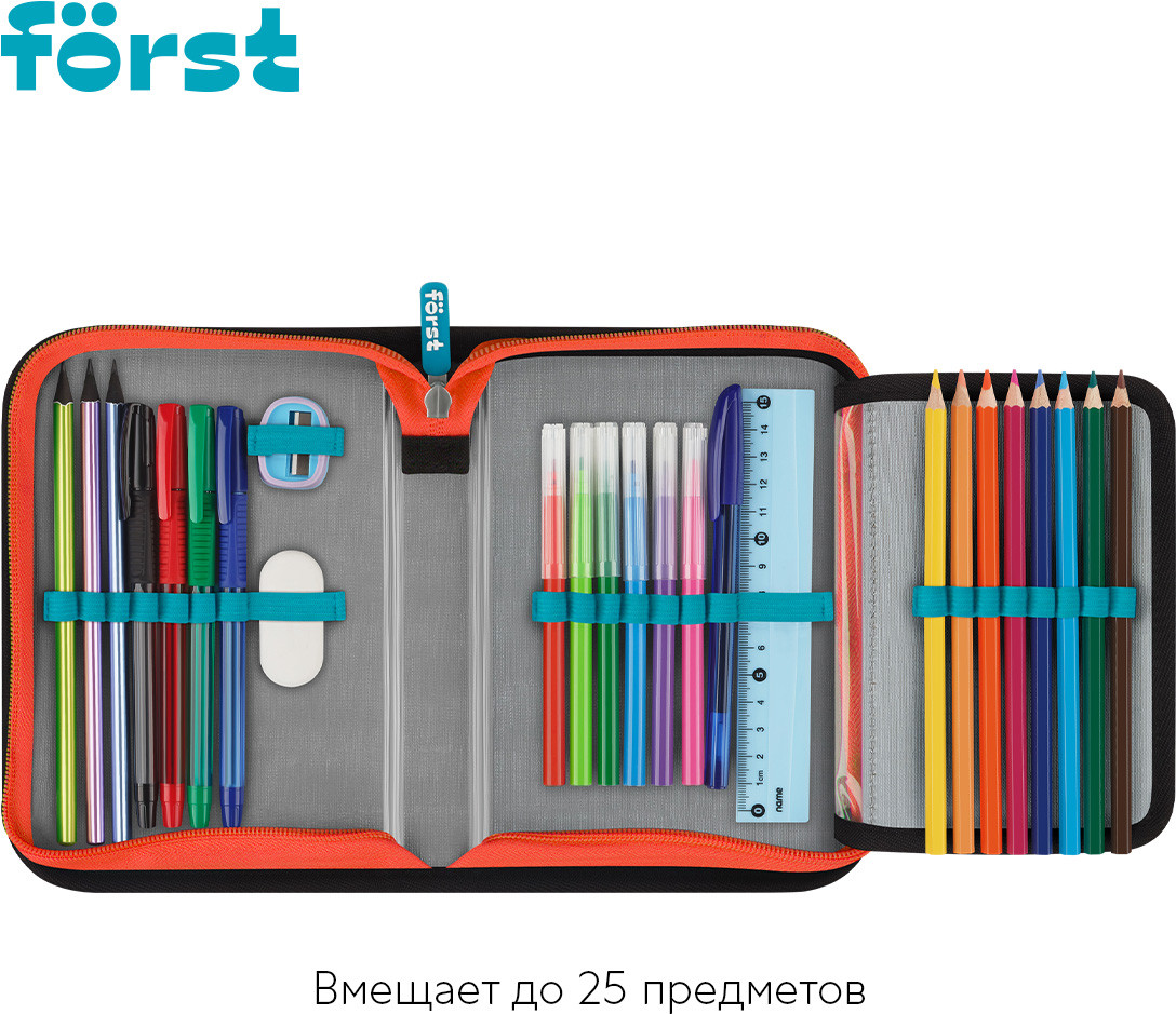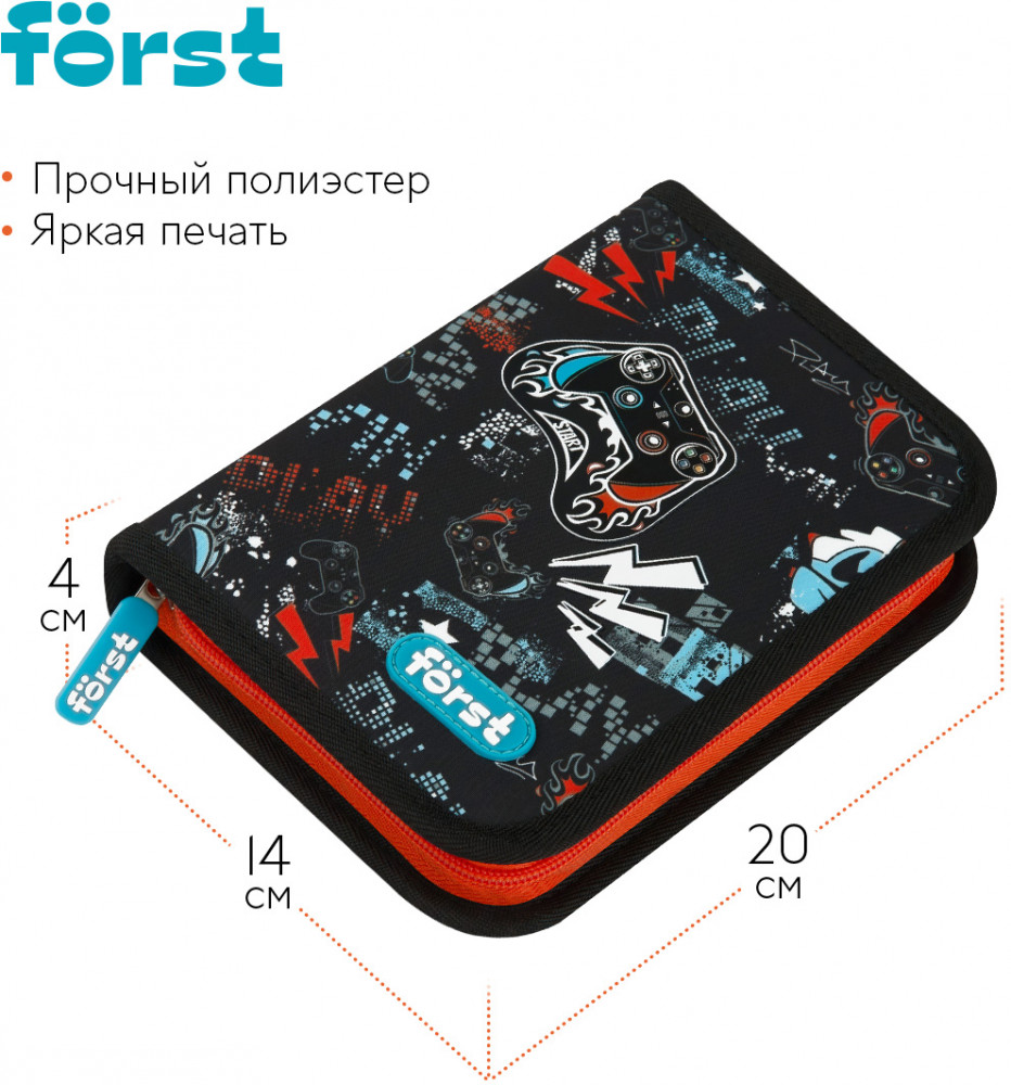 💳 Оплатить за товар можно при получении 🇰🇿 Есть бесплатная доставка по Казахстану 🎁 Копите бонусы с каждой покупки Серия: Flawless Victory Каркасный пенал Först помогает школьнику хранить канцелярские принадлежности в одном месте. Изделие размером 200×140×40 мм не занимает много места в рюкзаке. В одно отделение помещается 25 предметов. За счёт креплений-резиночек для канцтоваров внутри пенала легко поддерживать порядок. Одна откидная планка увеличивает вместимость изделия и позволяет всегда держать расписание уроков перед глазами. Благодаря крупному резиновому бегунку ребёнку удобно открывать пенал на молнии. Лицевая поверхность сделана из износостойкого полиэстера с принтом, а внутренняя — из текстурного ПВХ. |