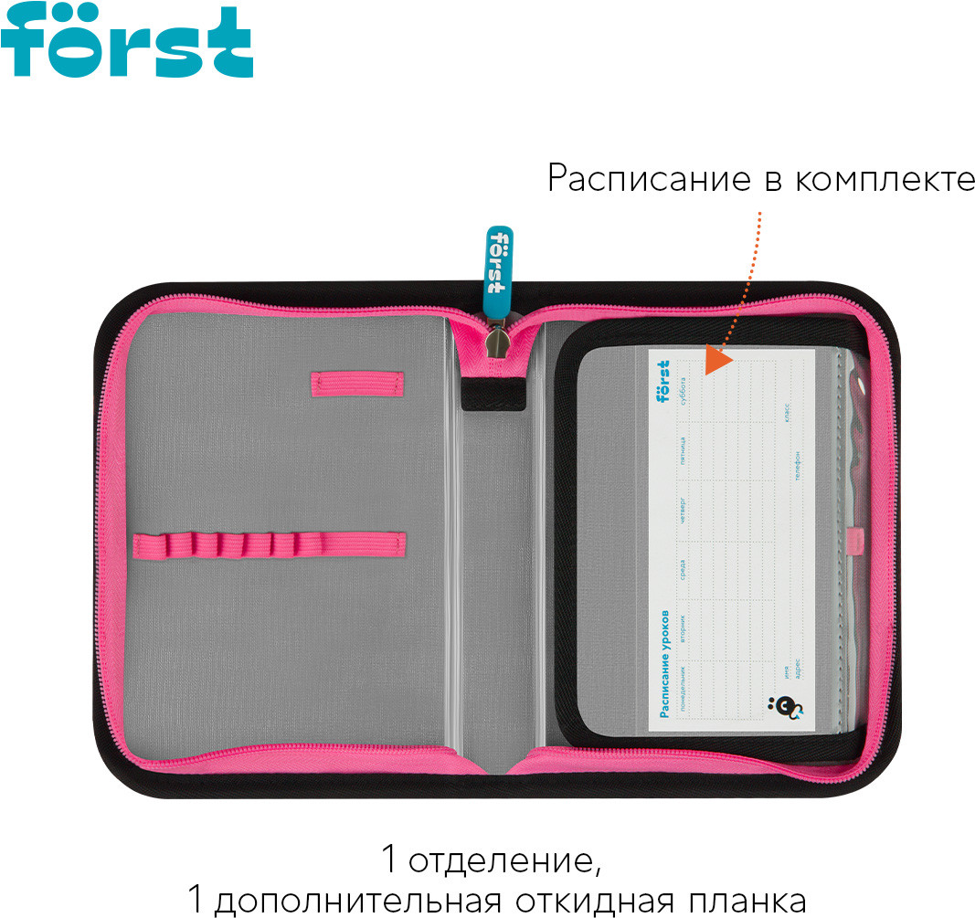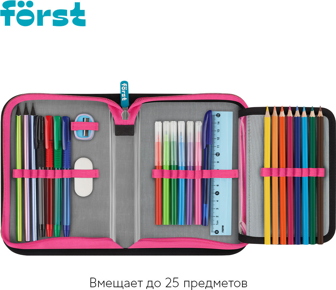 💳 Оплатить за товар можно при получении 🇰🇿 Есть бесплатная доставка по Казахстану от 1 дня 🎁 Копите бонусы с каждой покупки Серия: Plush Dream Каркасный пенал Först помогает школьнику хранить канцелярские принадлежности в одном месте. Изделие размером 200×140×40 мм не занимает много места в рюкзаке. В одно отделение помещается 25 предметов. За счёт креплений-резиночек для канцтоваров внутри пенала легко поддерживать порядок. Одна откидная планка увеличивает вместимость изделия и позволяет всегда держать расписание уроков перед глазами. Благодаря крупному резиновому бегунку ребёнку удобно открывать пенал на молнии. Лицевая поверхность сделана из износостойкого полиэстера с принтом, а внутренняя — из текстурного ПВХ. |