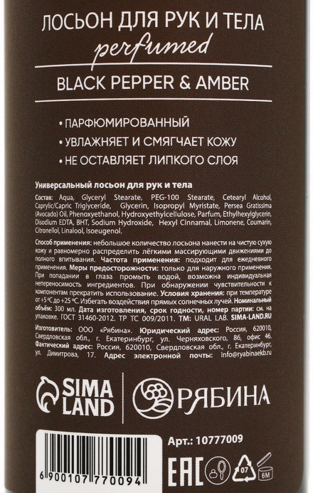 Ural lab Парфюмированный крем для тела «Black pepper»