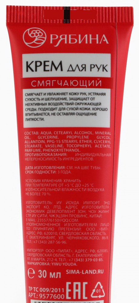 Рябина Смягчающий крем для рук «Сладкая малина»