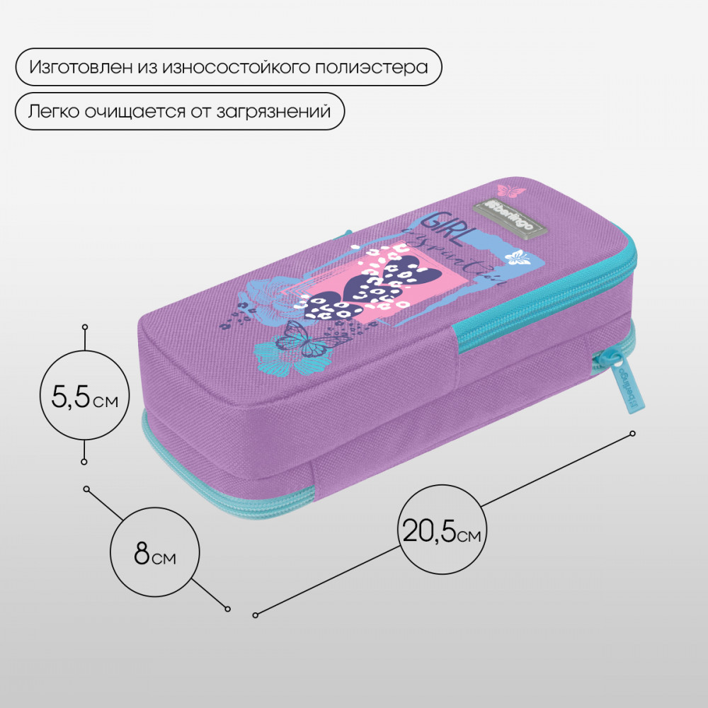 Berlingo Пенал-футляр школьный «Girl inspiration»В данный момент этот товар отсутствует в продаже. Возможно, у нас найдется аналогичный или похожий товар здесь. Пенал-футляр школьный Berlingo с двумя отделениями поможет аккуратно хранить канцелярские принадлежности. Прямоугольный пенал размером 205×80×55 мм не занимает много места в рюкзаке и сумке. На откидной части есть небольшой кармашек для точилки и ластика. В ней также спрятан магнит для удобства использования в открытом виде. Во втором отделении находится специальный органайзер для хранения канцтоваров. Лицевая и внутренняя поверхность сделана из износостойкого полиэстера. Объёмный пенал на контрастной молнии имеет оригинальный принт. |
