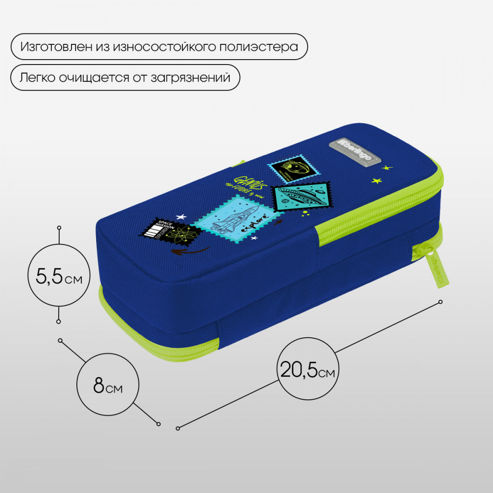 💳 Оплатить за товар можно при получении 🇰🇿 Есть бесплатная доставка по Казахстану от 1 дня 🎁 Копите бонусы с каждой покупки Серия: Space mission Пенал-футляр школьный Berlingo с двумя отделениями поможет аккуратно хранить канцелярские принадлежности. Прямоугольный пенал размером 205×80×55 мм не занимает много места в рюкзаке и сумке. На откидной части есть небольшой кармашек для точилки и ластика. В ней также спрятан магнит для удобства использования в открытом виде. Во втором отделении находится специальный органайзер для хранения канцтоваров. Лицевая и внутренняя поверхность сделана из износостойкого полиэстера. Объёмный пенал на контрастной молнии имеет оригинальный принт. |
