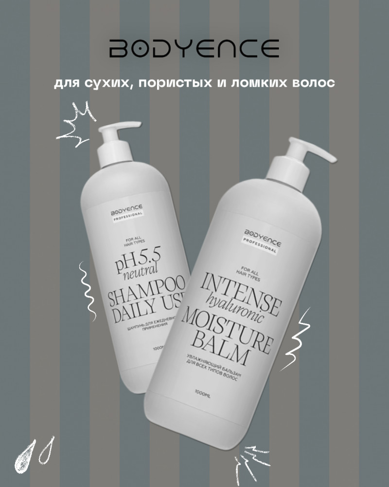 Шампунь: Aqua, Sodium Laureth Sulfate, Cocamidopropyl Betaine, Glycerin, Sodium Chloride, Decyl Glucoside, Laminaria Saccharina Extract, Calendula Officinalis Extract, Aloe Vera Leaf Extract, Hyaluronic Acid, PEG-40 Hydrogenated Castor Oil, PEG-12 Dimethicone, Polyquaternium-10, Cocamide DEA, Citric Acid, Parfum, Methylchloroisothiazolinone, Methylisothiazolinone, Sodium Benzoate, Potassium Sorbate, Linalool.