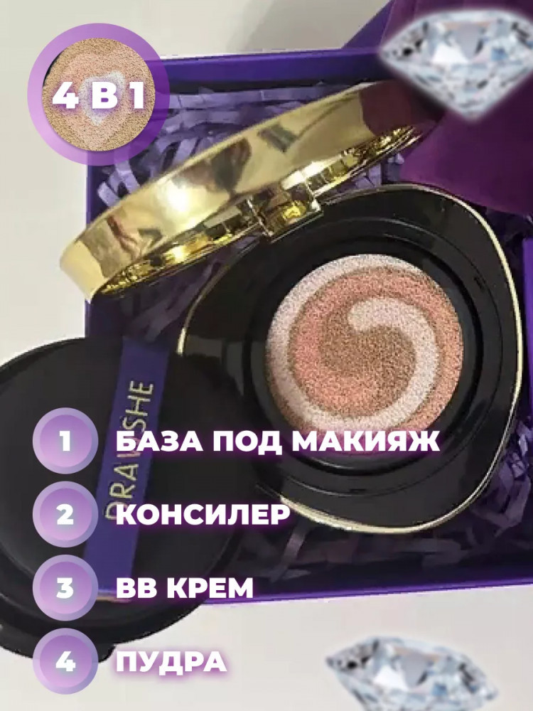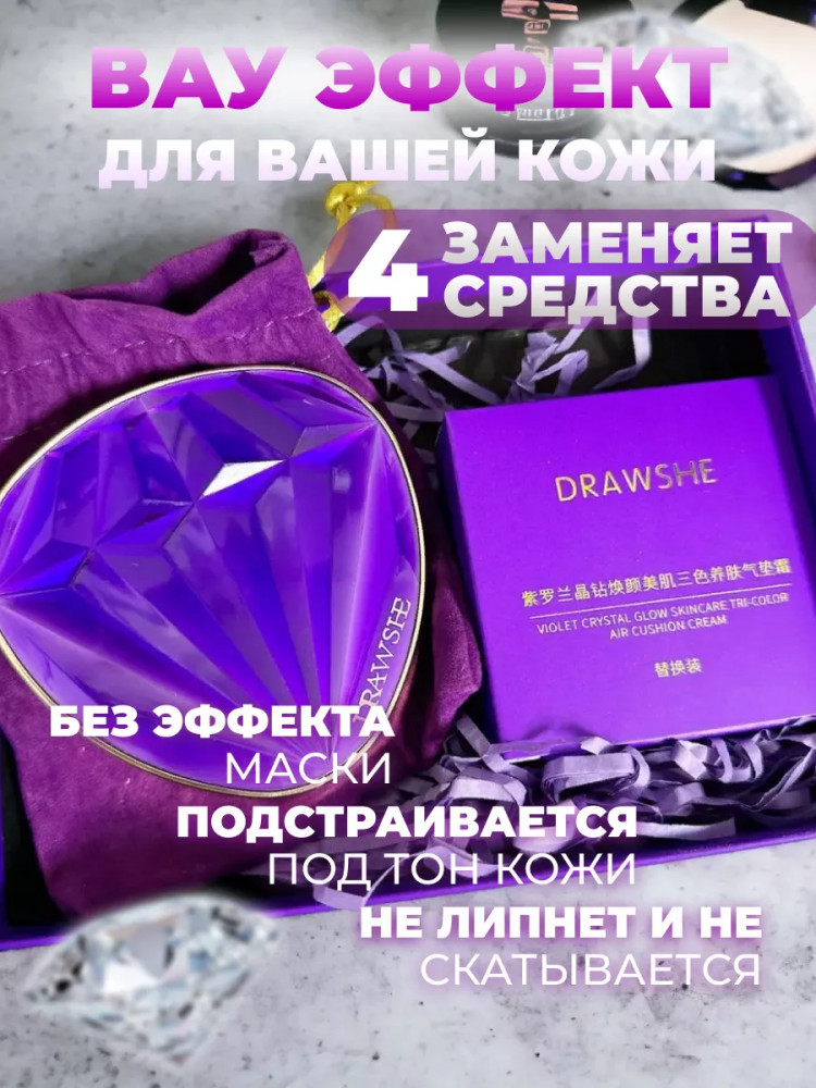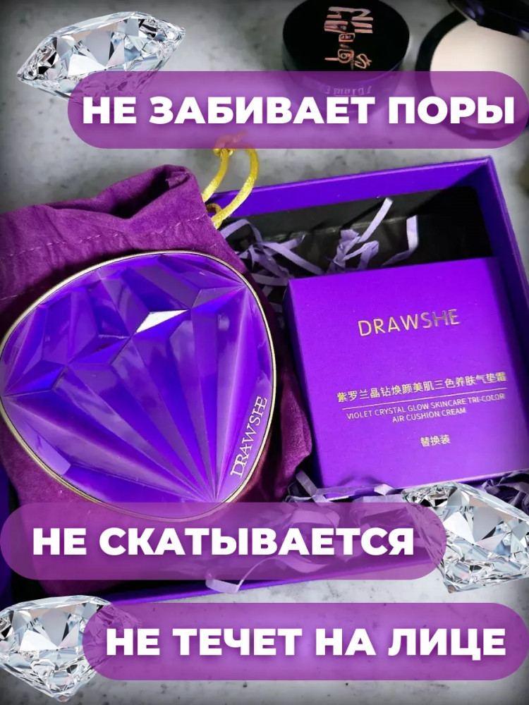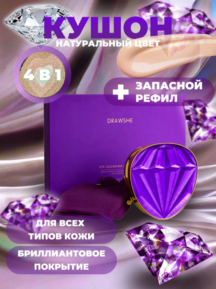 Drawshe Кушон для лица тональный 4 в 1 «Violet», оттенок натуральный бежевый