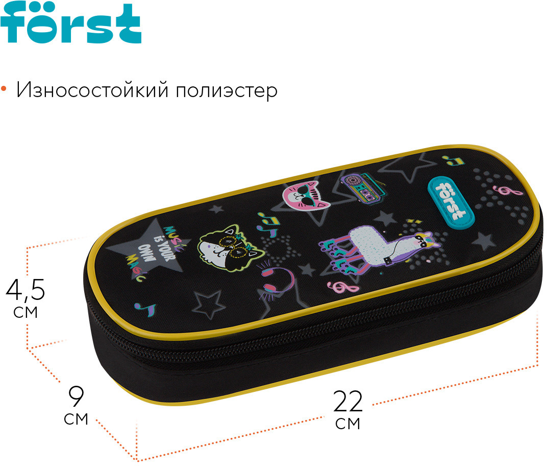 💳 Оплатить за товар можно при получении 🇰🇿 Есть бесплатная доставка по Казахстану от 1 дня 🎁 Копите бонусы с каждой покупки Серия: Disco Lama Пенал-футляр школьный корпусный Först поможет аккуратно хранить канцелярские принадлежности. Изделие овальной формы размером 220×90×45 мм имеет одно вместительное отделение на контрастной молнии. Материал лицевой поверхности и подкладки — полиэстер. На верхней откидной крышке расположены крепления-резиночки для канцелярских принадлежностей. |