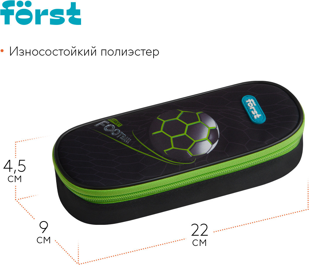 💳 Оплатить за товар можно при получении 🇰🇿 Есть бесплатная доставка по Казахстану от 1 дня 🎁 Копите бонусы с каждой покупки Серия: Street Football Пенал-футляр школьный корпусный Först поможет аккуратно хранить канцелярские принадлежности. Изделие овальной формы размером 220×90×45 мм имеет одно вместительное отделение на контрастной молнии. Материал лицевой поверхности и подкладки — полиэстер. На верхней откидной крышке расположены крепления-резиночки для канцелярских принадлежностей. |