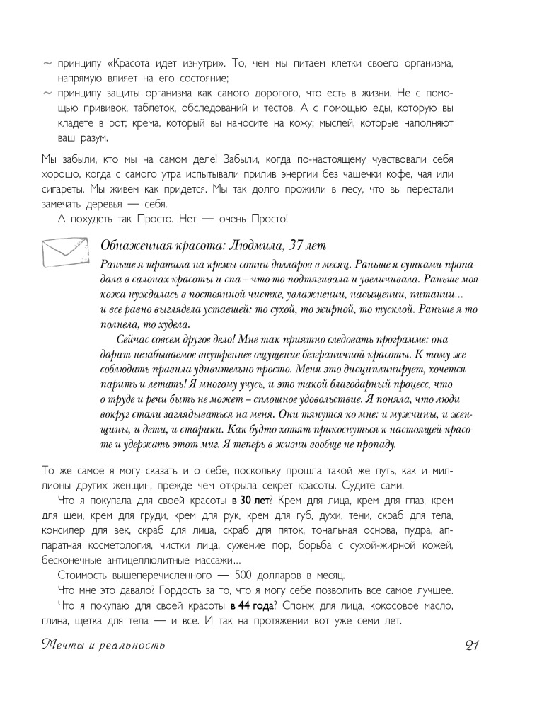 Книга, потрясающая!!! Совсем недавно брала ее для своей начальнице, почитала и сразу влюбилась, сейчас заказала ее себе лично. Книга содержательная, много полезной информации по омоложению и правильному питанию. В книге автор расставляет все по полочкам, что способствует пониманию.