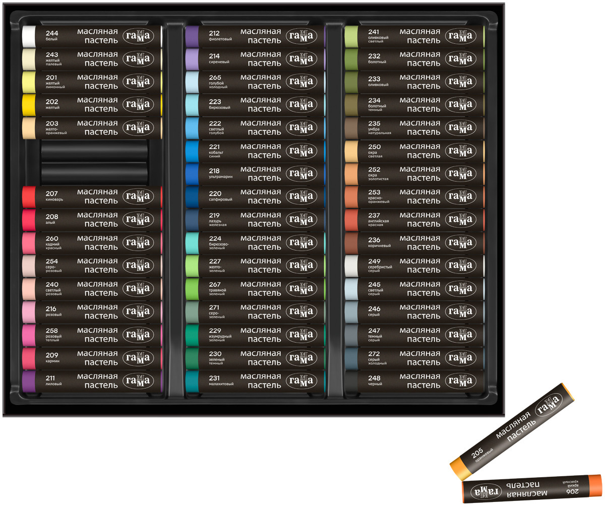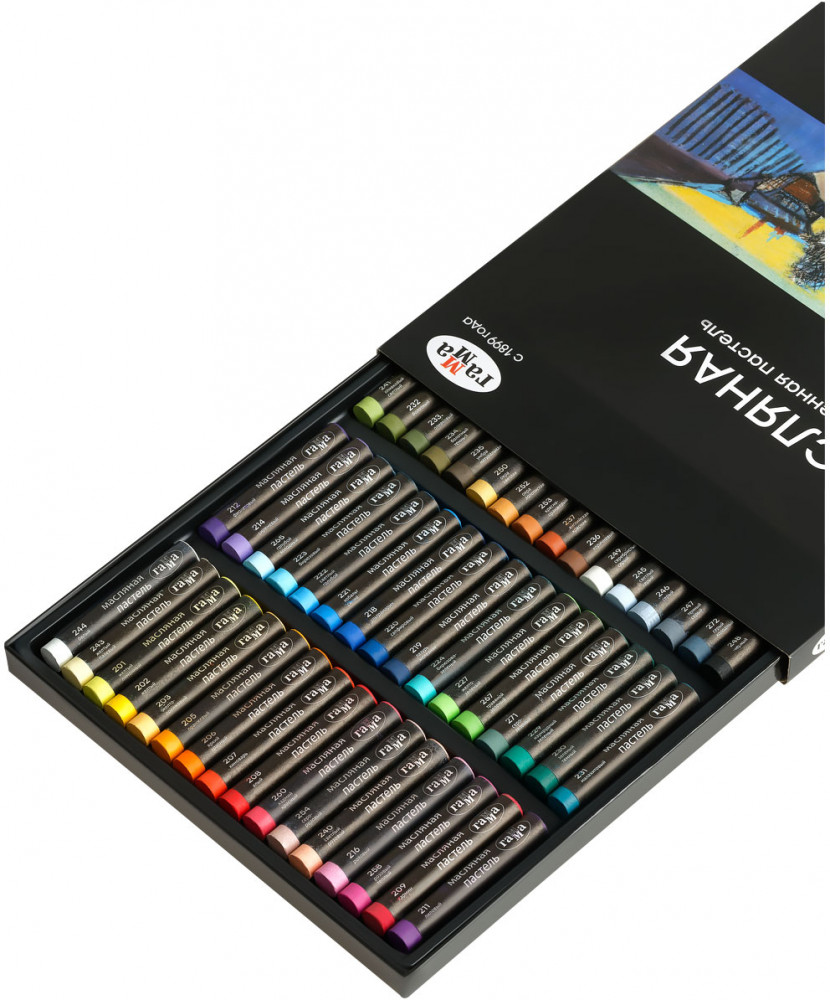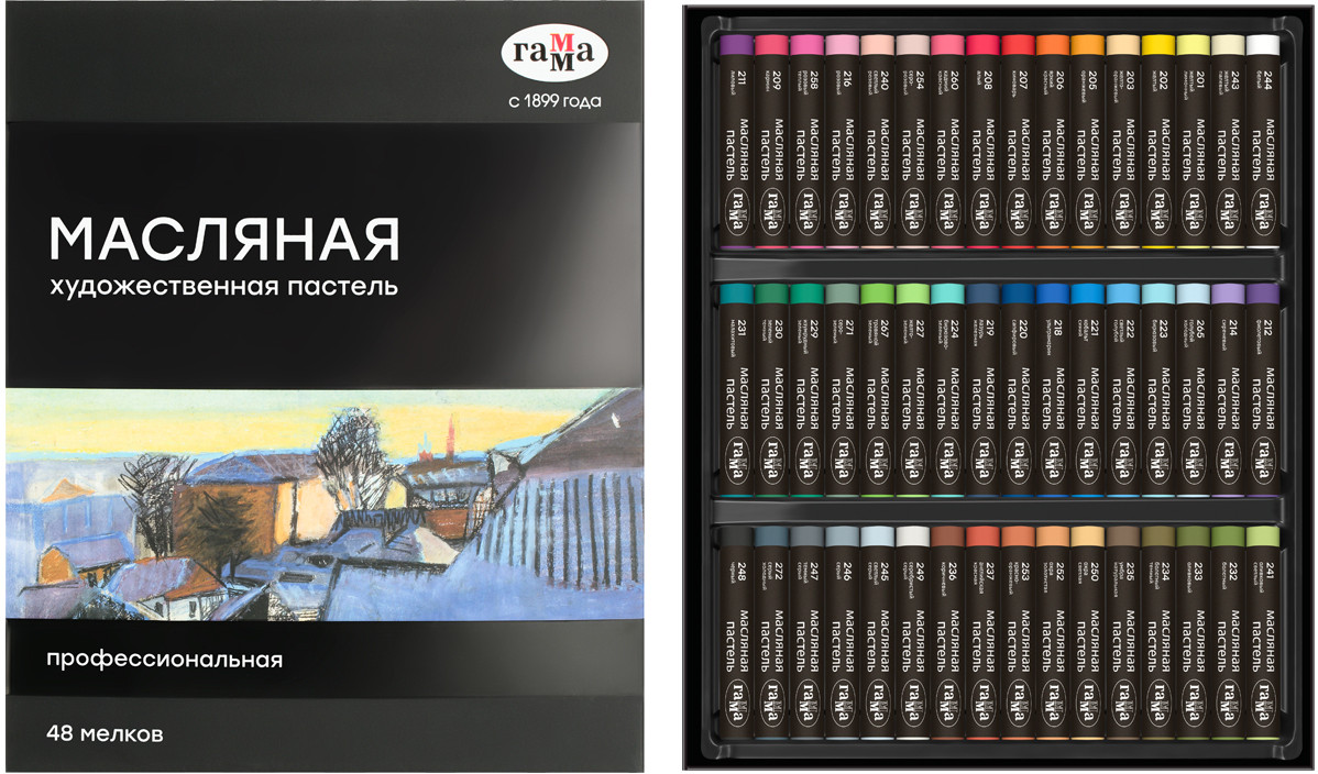 Масляная пастель Гамма изготовлена в Корее на основе тонкотертых пигментов и минерального масла и подходит для художников всех уровней: от начинающих до профессионалов. В наборе 48 цветов. Мелки имеют диаметр 11 мм, длина составляет 70 мм.