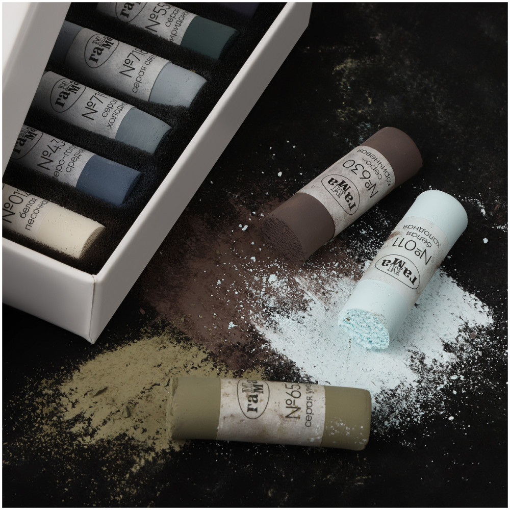 💳 Оплатить за товар можно при получении 🇰🇿 Есть бесплатная доставка по Казахстану 🎁 Копите бонусы с каждой покупки Набор сухой художественной пастели Гамма состоит из 12 благородных серых оттенков. Палитра серых цветов разработана в лаборатории завода Гамма при участии национального союзу пастелистов. Она предназначена для изображения теней, создания тональных вариаций, ощущения глубины и контраста. Художники используют серые нейтральные цвета в качестве базовых. Основные оттенки серого подходят для смешивания с другими цветами и создания приглушенных сдержанных тонов. |