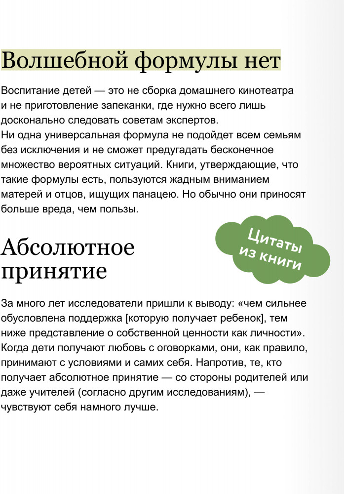 💳 Оплатить за товар можно при получении 🇰🇿 Есть бесплатная доставка по Казахстану от 1 дня 🎁 Копите бонусы с каждой покупки Серия: Я дарю ребенку крылья «Как мы можем заставить детей делать то, что нам нужно?» — рассуждают родители и педагоги старой закалки. Вся их стратегия сводится к тому, чтобы принудить детей соответствовать нашим ожиданиям и примерно себя вести. Они горячо отстаивают необходимость не поддаваться детям и бороться за свою власть, развеивая все опасения и сомнения, которые могут возникнуть у родителей. Традиционные подходы к воспитанию основаны на поощрениях и наказаниях, дающих ребенку понять, что он бывает любим нами, только когда ведет себя правильно или производит должное впечатление. |