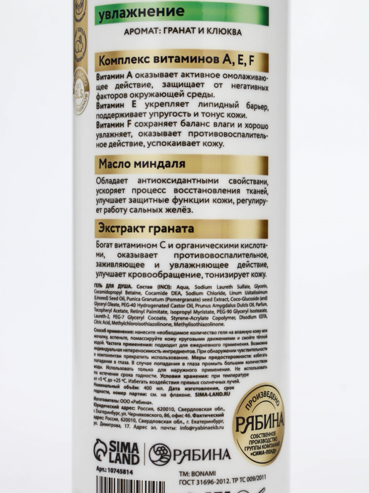 BONAMI Крем-гель для душа «Гранат и клюква»