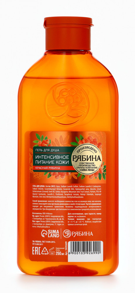 Рябина Гель для душа с ароматом рябины «Интенсивное питание кожи»
