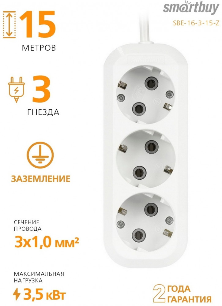 Smartbuy Удлинитель SBE-16-3-15-Z