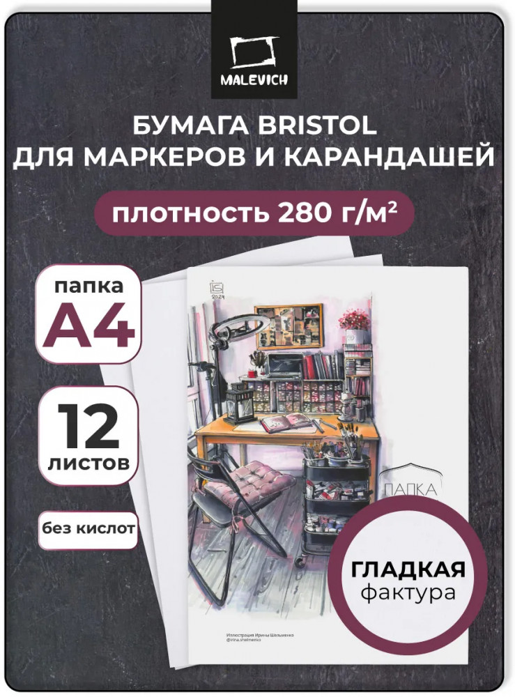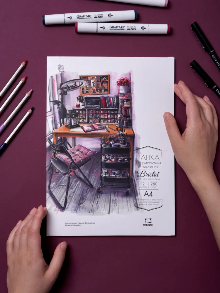 МалевичЪ Папка с бумагой для графики и маркеров-25% +40