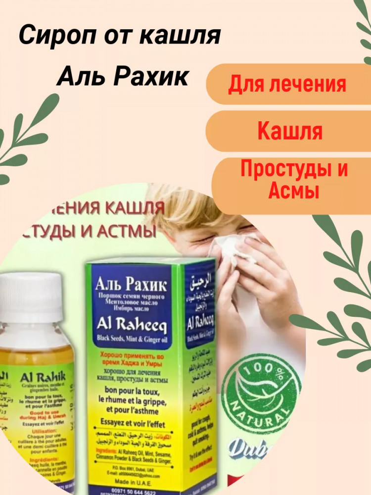 Сироп Аль Рахик (Al Raheeq) — эффективное средство для лечения кашля, бронхита, астмы и простудыю. Сироп Аль Рахик — это мощное и универсальное средство, предназначенное для борьбы с респираторными заболеваниями у взрослых и детей. Благодаря своему уникальному составу, он обладает отхаркивающими, бактерицидными, иммуностимулирующими и восстановительными свойствами. Это натуральное средство помогает быстро и эффективно устранить симптомы кашля и облегчить состояние при простуде, бронхите и других дыхательных заболеваниях.