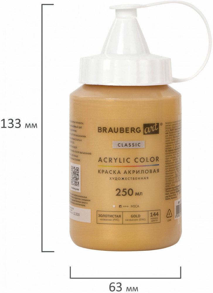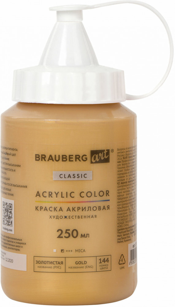 Brauberg Краска акриловая художественная, 144 Золотистая