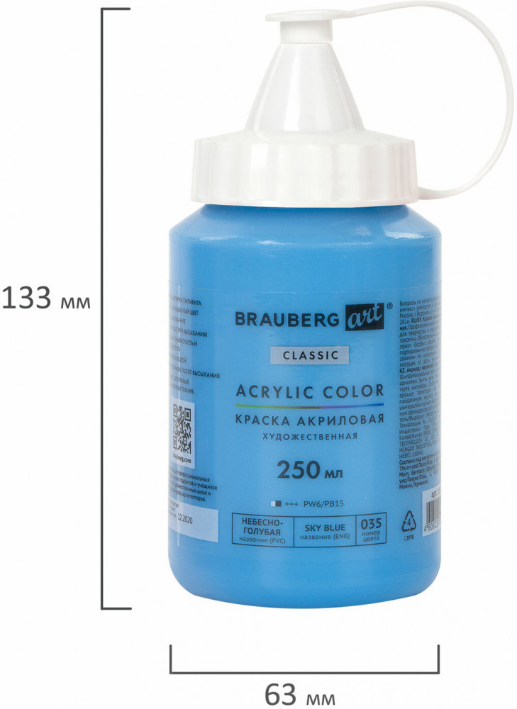 Brauberg Краска акриловая художественная, 35 Небесно-голубая