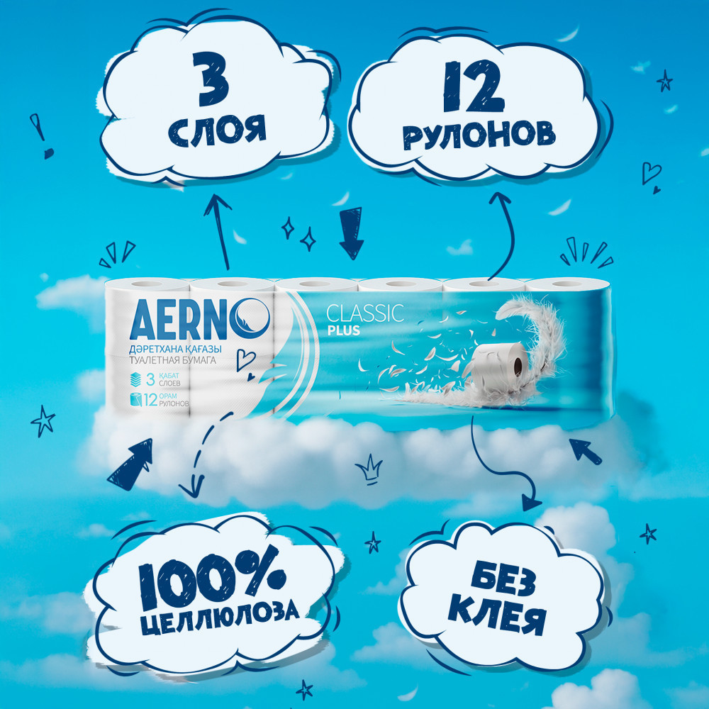 Туалетная бумага AERNO Classic 3 слоя — мягкость, комфорт и экологичность для вашей семьи. AERNO Classic — это трёхслойная туалетная бумага из 100% первичной целлюлозы, созданная для вашего ежедневного комфорта и гигиены. Мягкая и прочная, легко отрывается благодаря тиснению и перфорации. Без запаха и клея, быстро растворяется в воде и не забивает канализацию, подходит для септиков и всех типов унитазов.