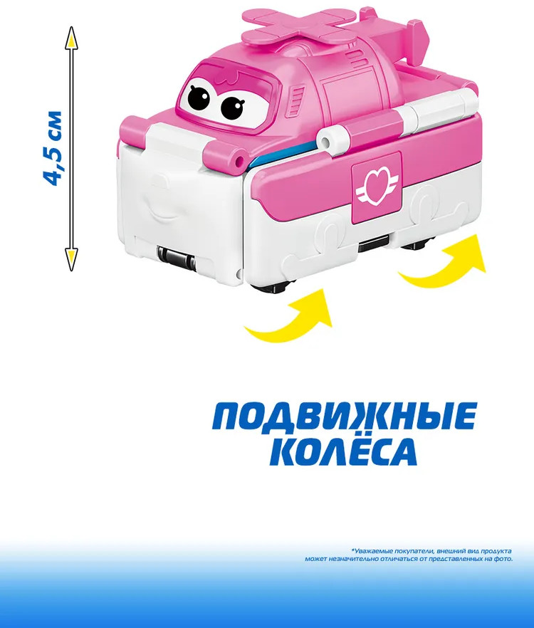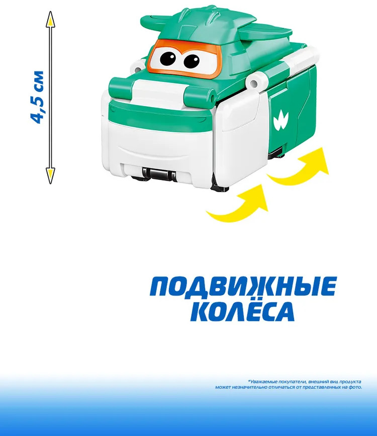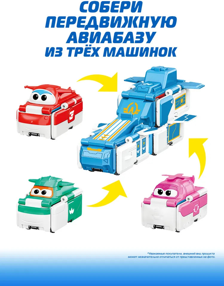 💳 Оплатить за товар можно при получении 🇰🇿 Есть бесплатная доставка по Казахстану от 1 дня 🎁 Копите бонусы с каждой покупки Набор машинок-перевёртышей — 3 мини-трансформера с героями популярного анимационного сериала «Супер крылья»! Собери мировой самолёт из трёх персонажей: Джетт, Диззи и Тино. Каждая мини-фигурка трансформируется в отдельную часть мирового самолёта. Нужно выполнить всего 3 шага с каждой машинкой: открыть её, перевернуть и зафиксировать в новом обличии. Если соединить все 3 машинки, то получится мини-версия Мирового самолёта из мультфильма! Машинки-перевёртыши оснащены колёсами и готовы к игре! |