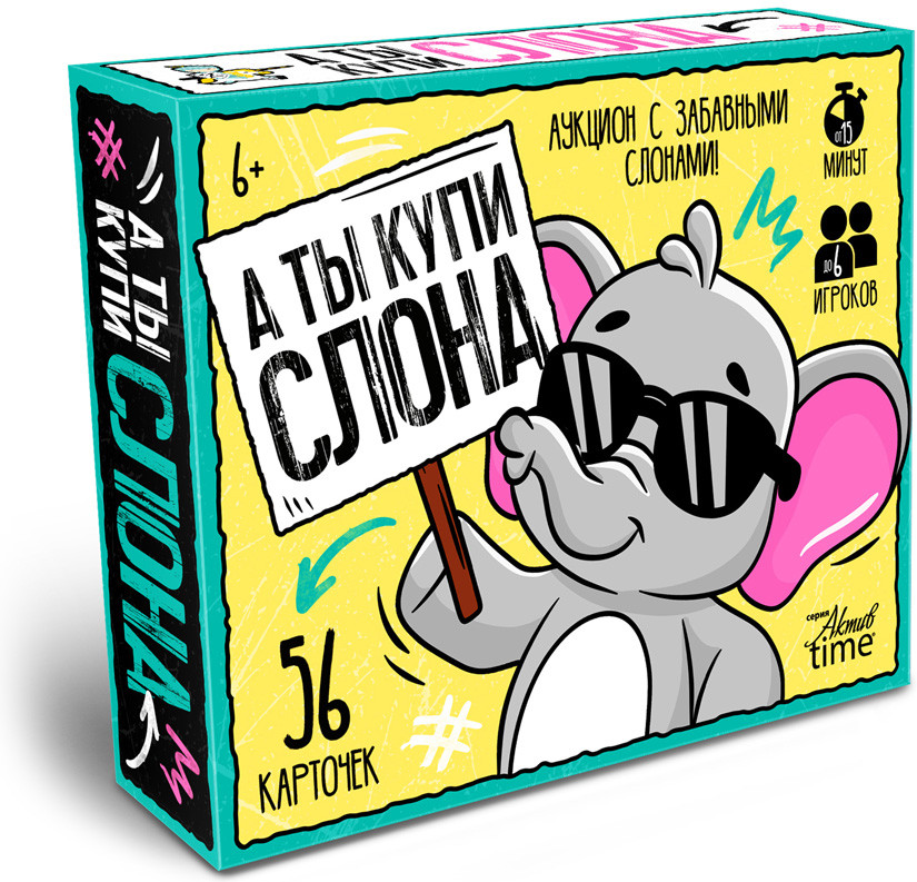 Серия: Актив time Настольная игра «А ты купи Слона» — это не просто игра, это аукционное безумие, где каждый стремится первым собрать коллекцию из восьми очаровательных слонов одного вида и достичь заветных 250 очков. Готовьтесь к взрывным эмоциям, хитрым стратегиям и безудержному веселью!