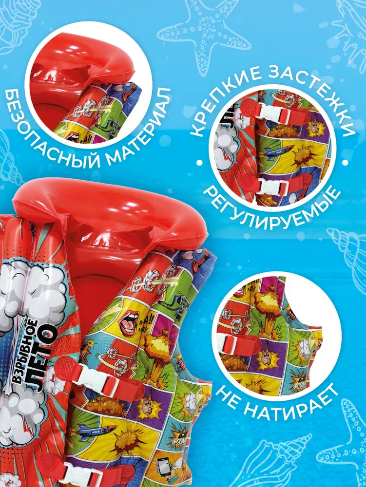 Серия: Взрывное лето Детский жилет для плавания пригодится вашему ребенку в жаркие солнечные дни на море, в реке, озере или бассейне. С помощью жилета ребенок научится свободно держаться на воде и плавать. Красочный дизайн жилета подарит ребенку радость и отвлечет от боязни воды. Прочный материал ПВХ гарантирует долгий срок службы — жилет не порвется и будет радовать продолжительное время. |