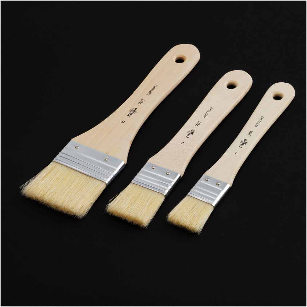 Гамма Набор художественных кистей-флейцевВ данный момент этот товар отсутствует в продаже. Возможно, у нас найдется аналогичный или похожий товар здесь. Набор художественных кистей-флейцев Гамма отлично подойдёт для нанесения широких слоёв краски одним мазком и свободной живописи заливками. В наборе 3 плоских кисти с ворсом из натуральной свиной щетины: № 1, 2, 5. Изделия идеальны для масляной живописи и способны удерживать большое количество краски; всего несколькими движениями можно создавать большие по площади фактуры. Волос, используемый в производстве флейцев, прошел специальную обработку, исключающую выпадение из кисти на рабочую поверхность, идеально сбалансирован в соотношении жёсткости и эластичности. Кисти имеют длинную ручку из дерева. Набор упакован в блистер с европодвесом. |
