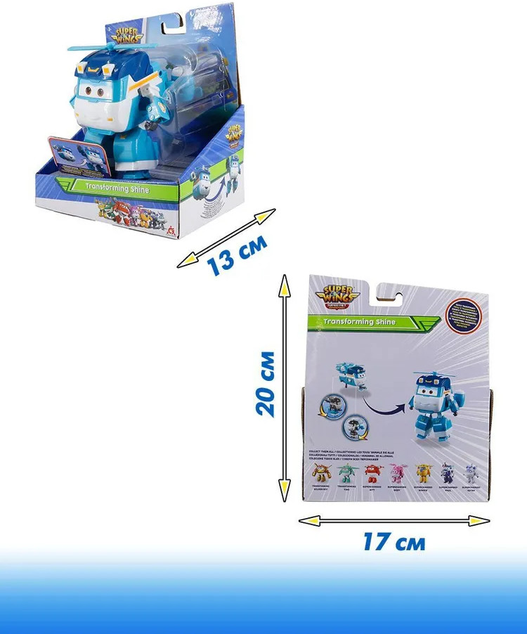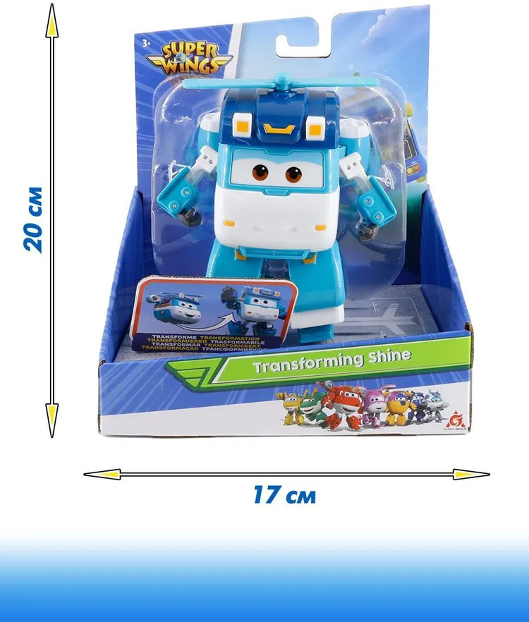 💳 Оплатить за товар можно при получении 🇰🇿 Есть бесплатная доставка по Казахстану от 1 дня 🎁 Копите бонусы с каждой покупки Трансформер Шайн — новый член команды «Супер Крыльев»! Команда «Супер Крыльев» готова взяться за любую работу — большую или маленькую — будь то навигация по скалистым валунам вулкана, доставка посылки или помощь в погоне и поимке стаи щенков, «Супер Крылья» всегда готовы прийти на помощь. Игрушка трансформер Шайн может трансформироваться из самолёта в робота всего за 10 шагов. Руки и ноги игрушки двигаются. Почувствуй себя героем команды «Супер Крыльев»! |