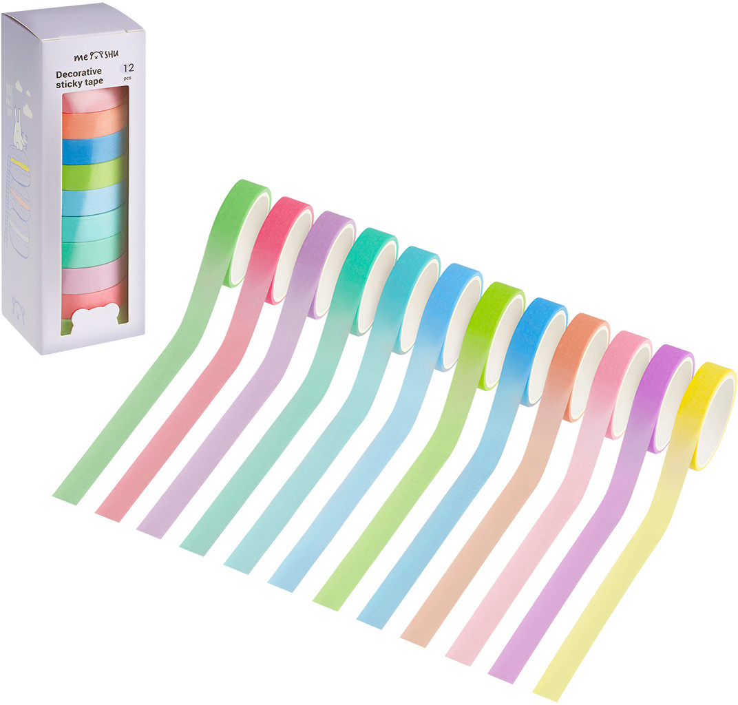 Meshu Набор клейких декоративных лент «Macaron»В данный момент этот товар отсутствует в продаже. Возможно, у нас найдется аналогичный или похожий товар здесь. Декоративные клейкие ленты Meshu «Macaron» предназначены для упаковки подарков, оформления поделок и скрапбукинга. В набор входят 12 лент в разных пастельных оттенках. Длина намотки — 3 м. Открытки, альбомы, ежедневники и многое другое может преобразиться с бумажными лентами бренда. Качественная клеевая основа позволит надёжно зафиксировать декор. Набор упакован в бумажный бокс. |
